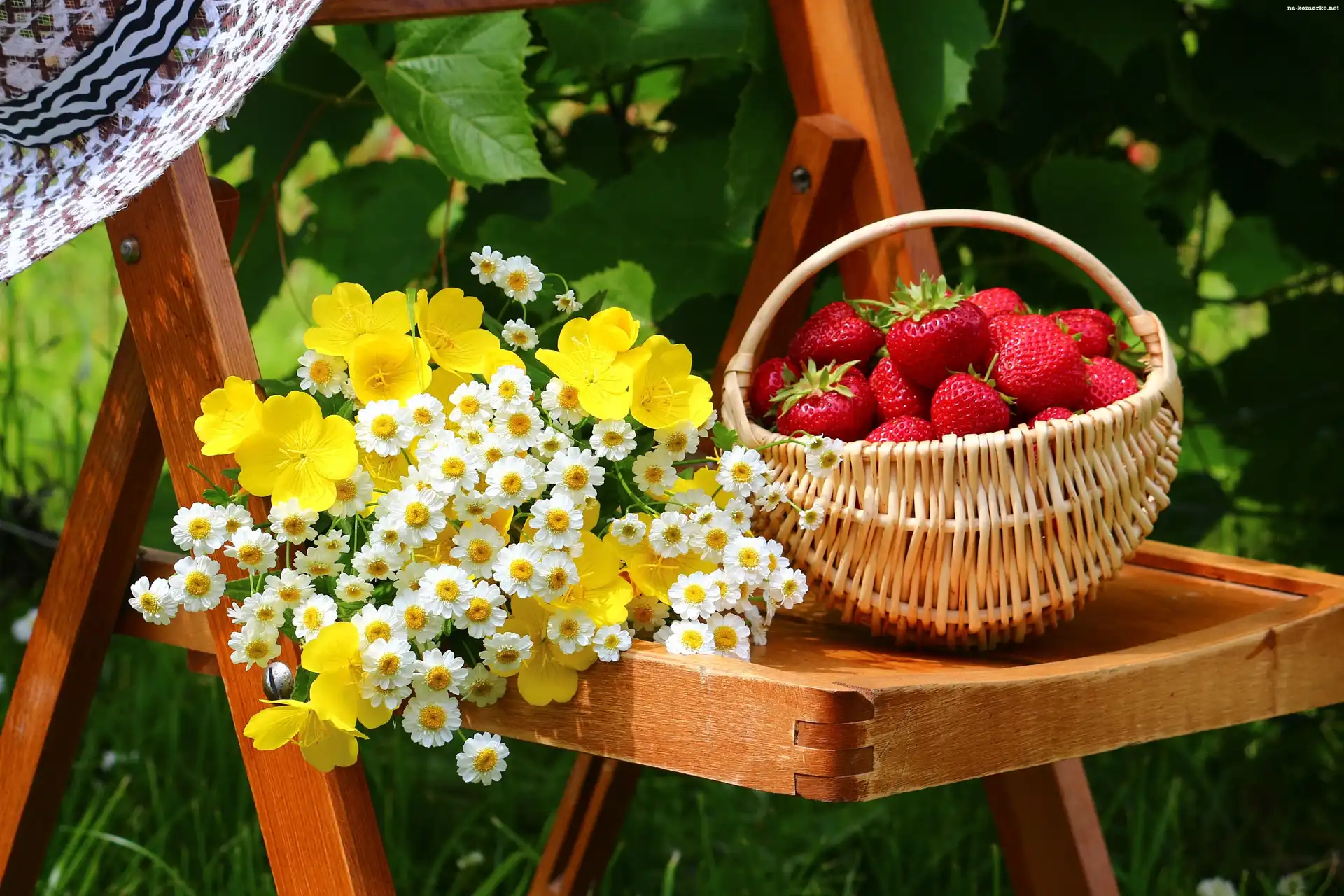 Krzesło, Truskawek, Kwiaty, Koszyk na Komórkę