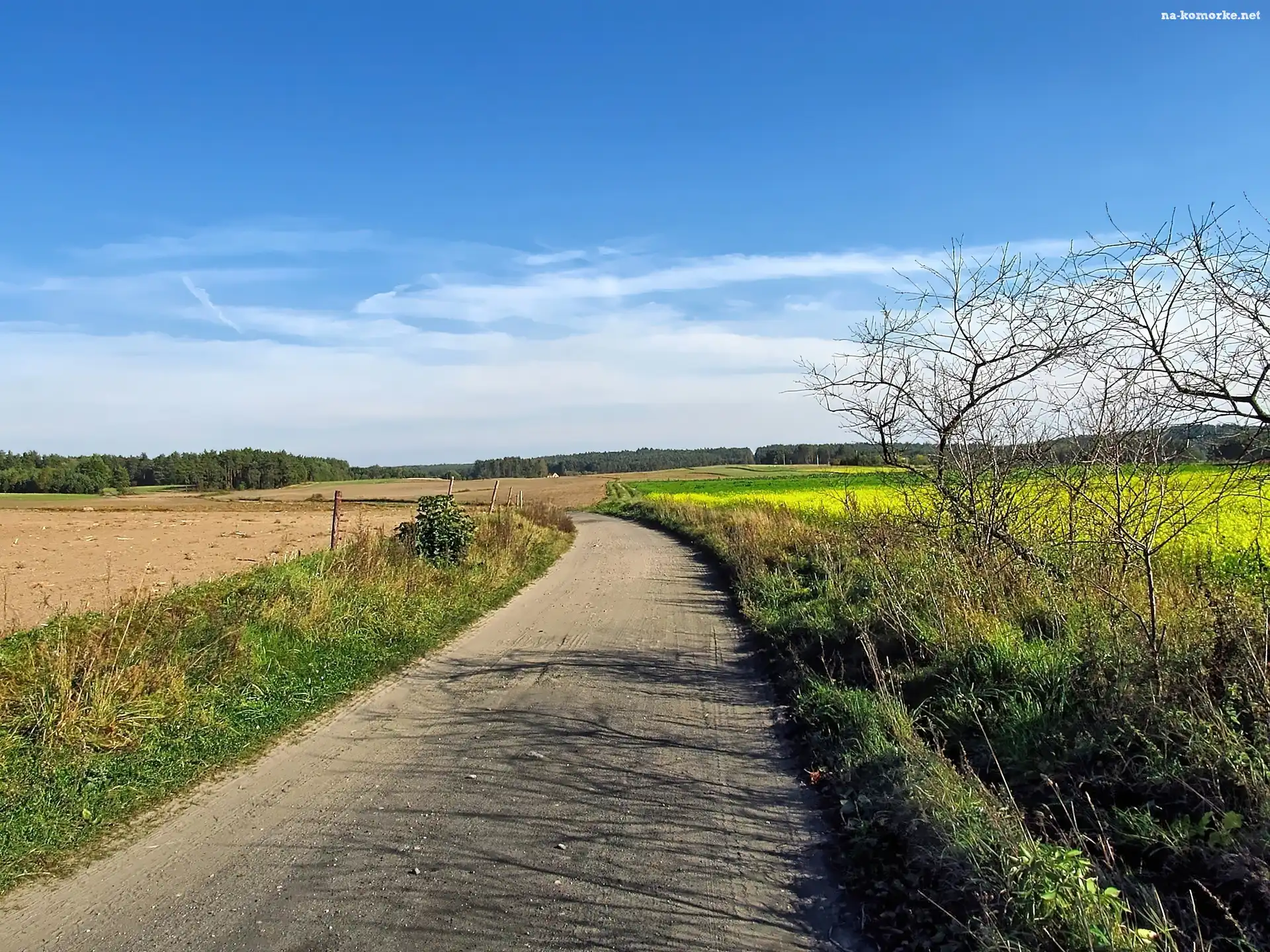 Krzew, Pola, Droga, Chmury, Gryka, Las na Komórkę