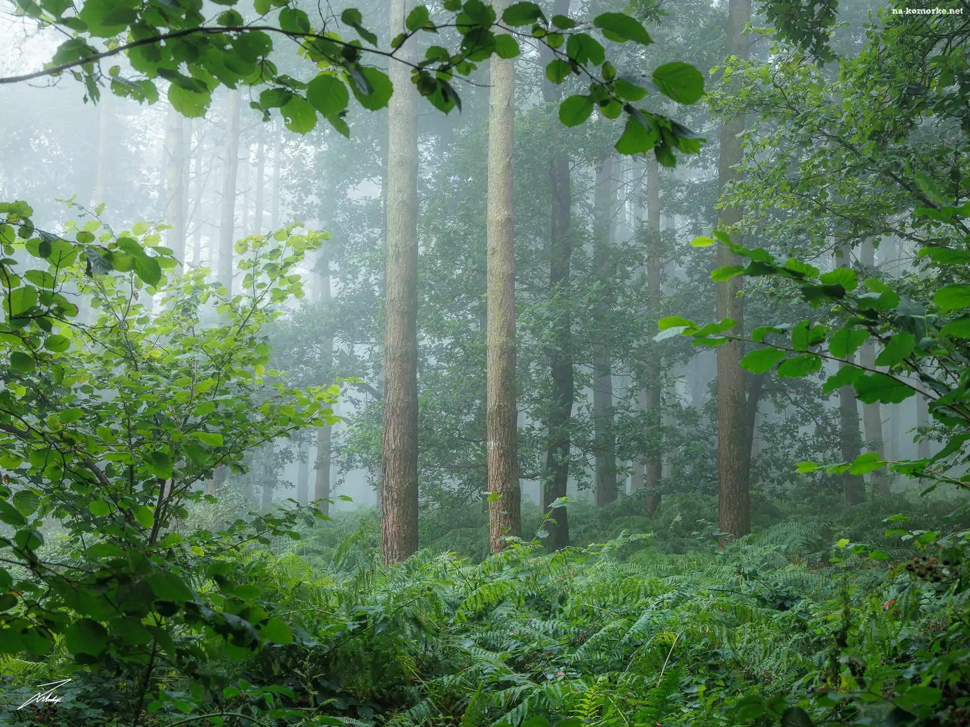 Las, Krzewy, Mgła, Drzewa, Paprocie na Komórkę
