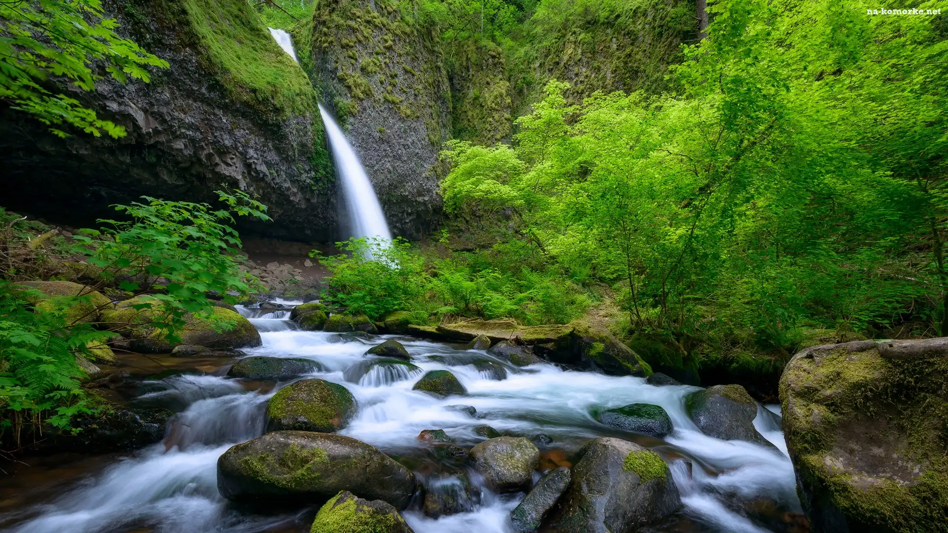 Wodospad, Skały, Stany Zjednoczone, Rzeka, Oregon, Rośliny, Upper Horsetail Falls, Kamienie, Zielone, Krzewy na Komórkę |
