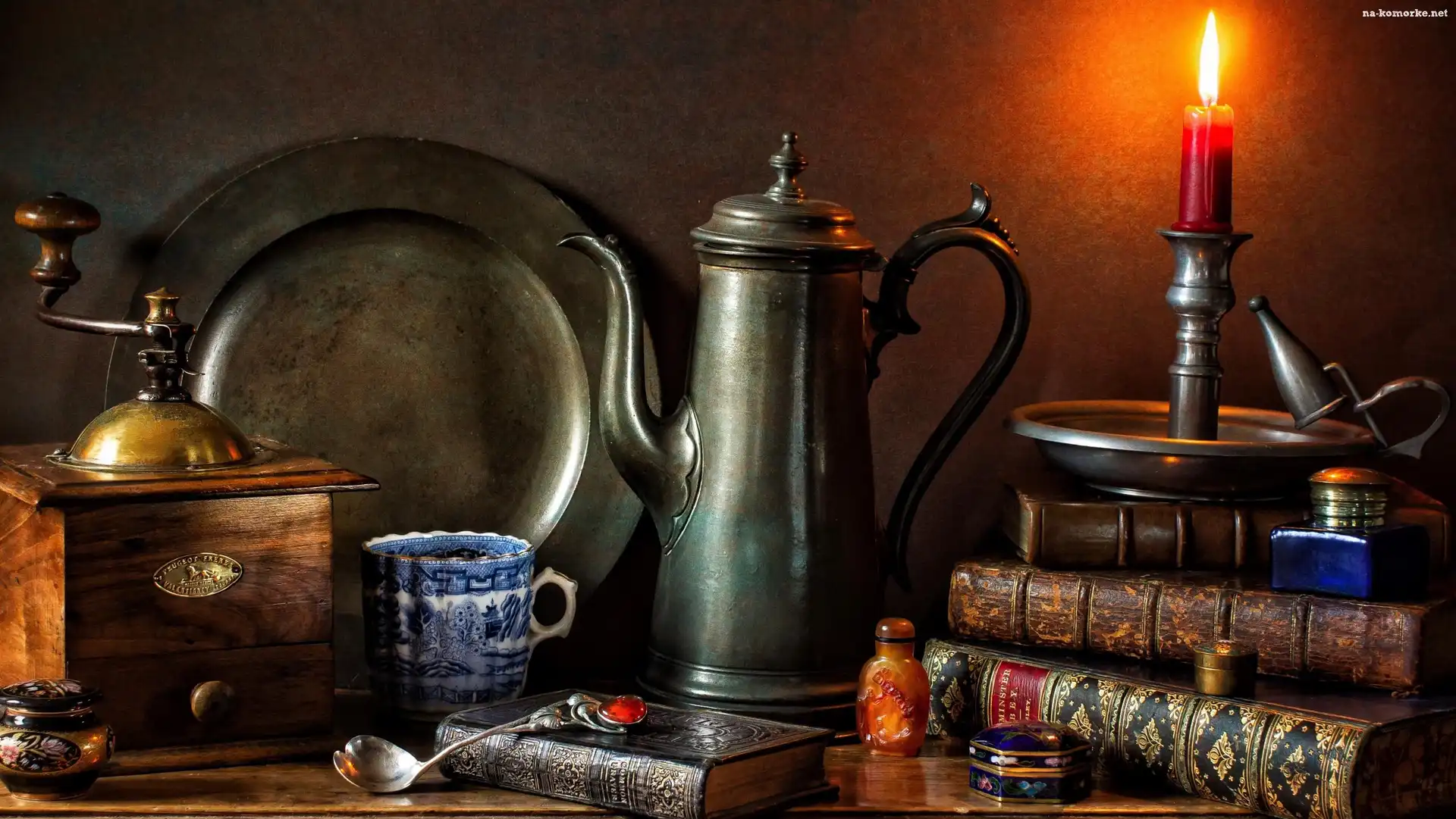 Książki, Młynek, Dzbanek, Płomień, Kubek, Świeczka na Komórkę