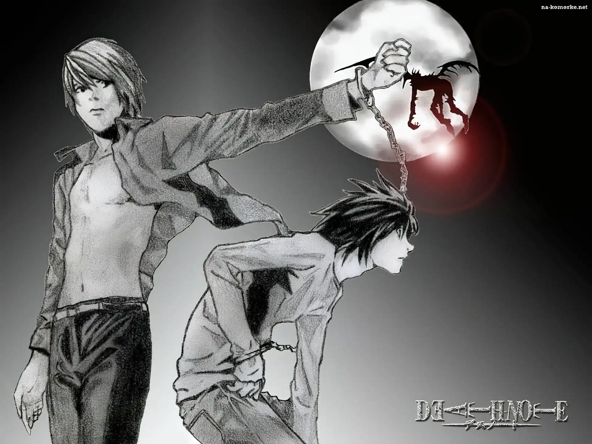 księżyc, Death Note, potwór, chłopcy, kajdanki na Komórkę
