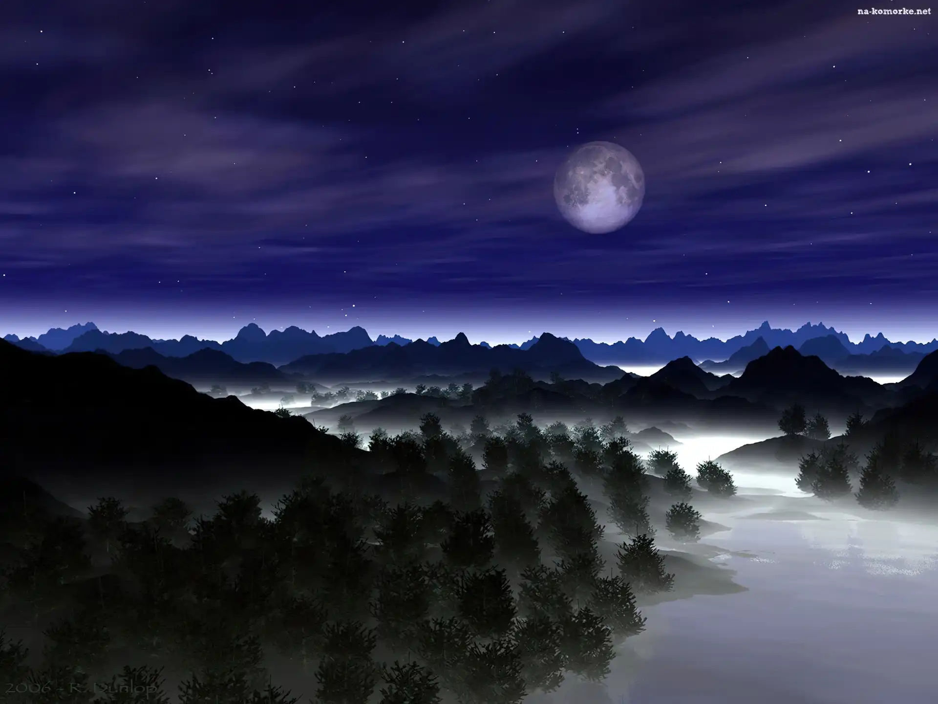 Księżyc, Mgła, Lasy, Niebo, Noc na Komórkę