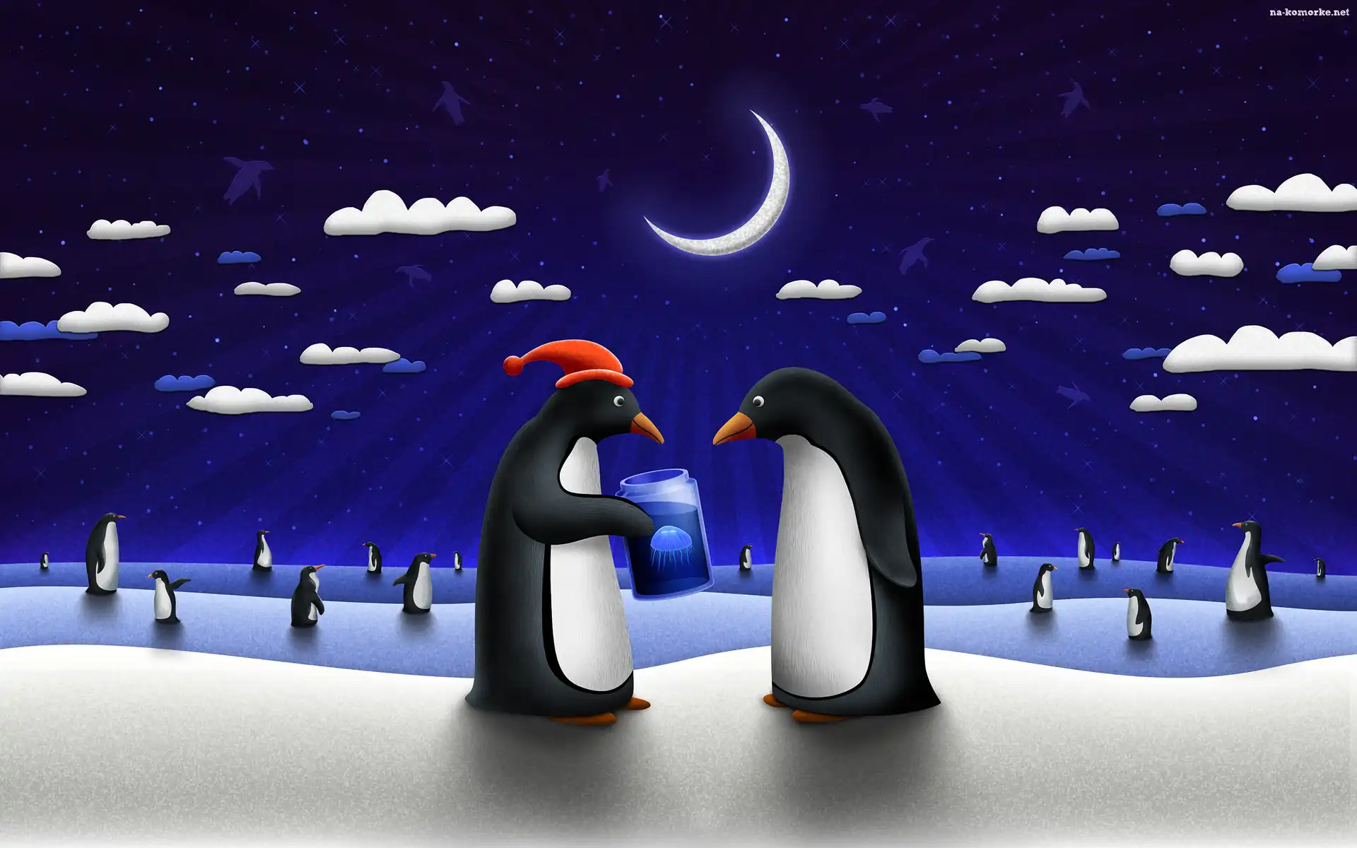 Pingwiny, Księżyc, Czapka na Komórkę