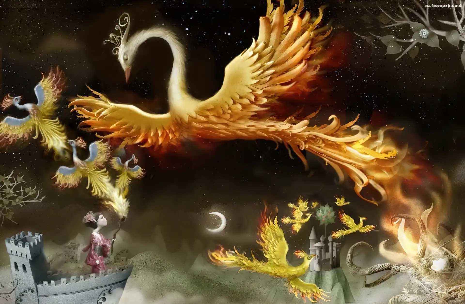 Ptaki, Księżyc, Dziewczyna na Komórkę