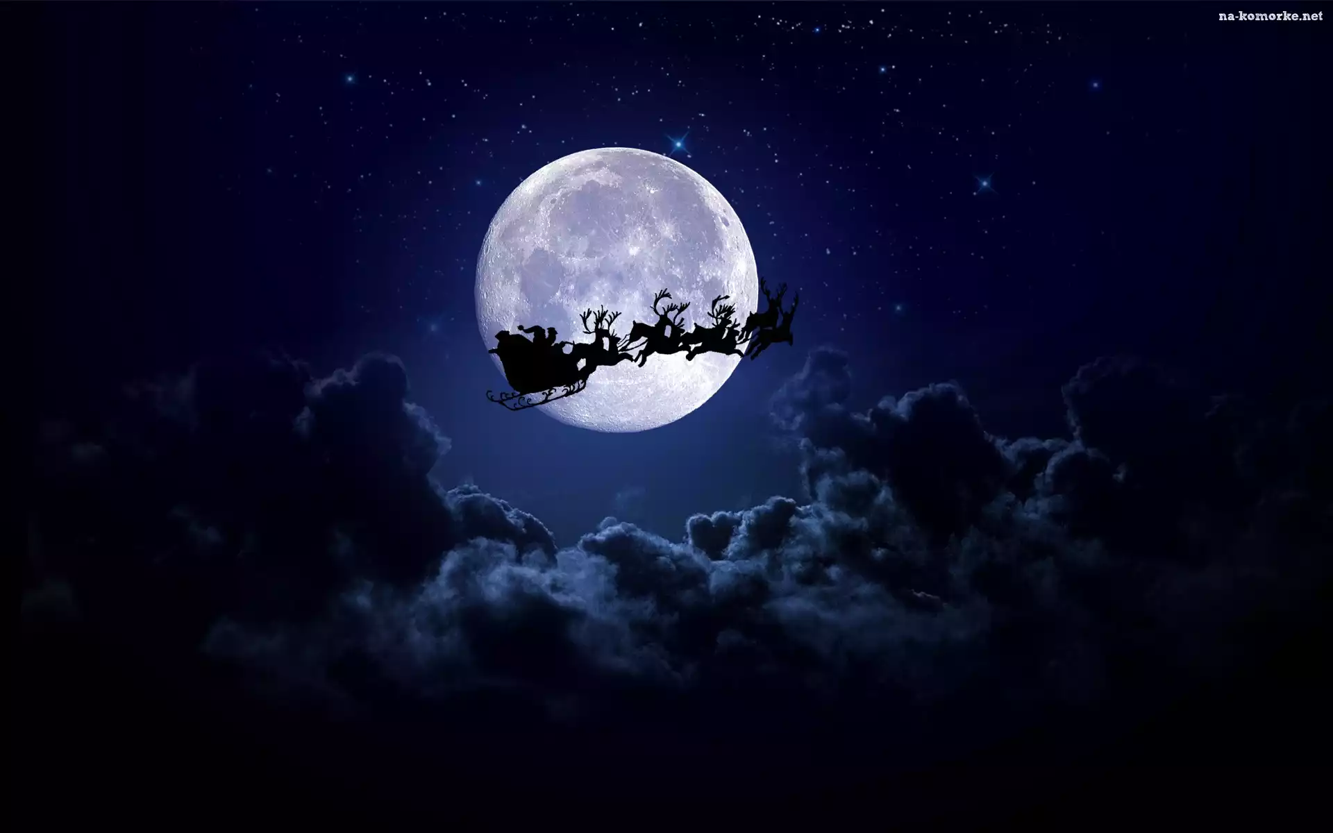 Księżyc, Mikołaj, Sanie, Noc, Renifery, Chmury na Komórkę