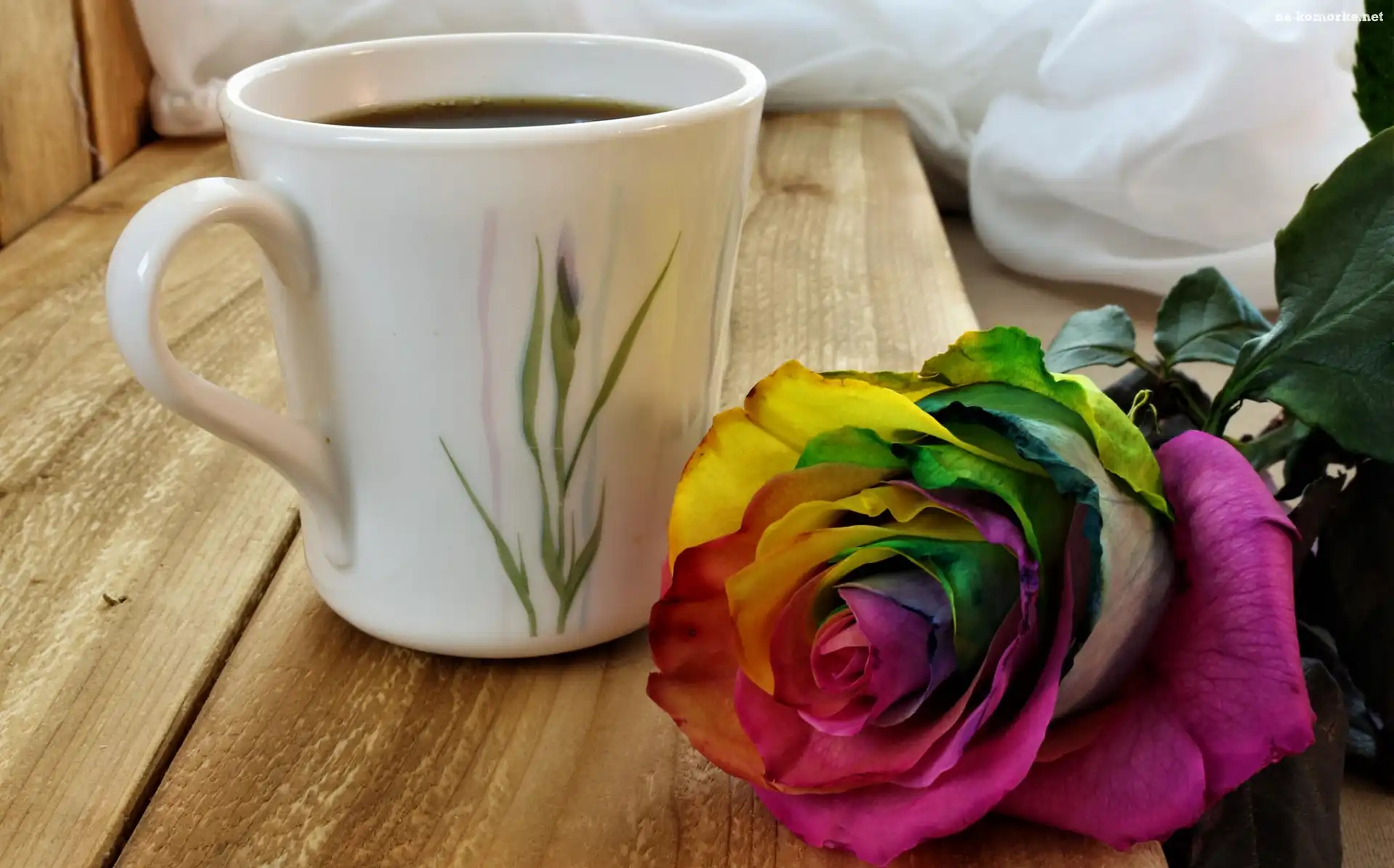 Kubek, Deski, Kolorowa, Róża na Komórkę