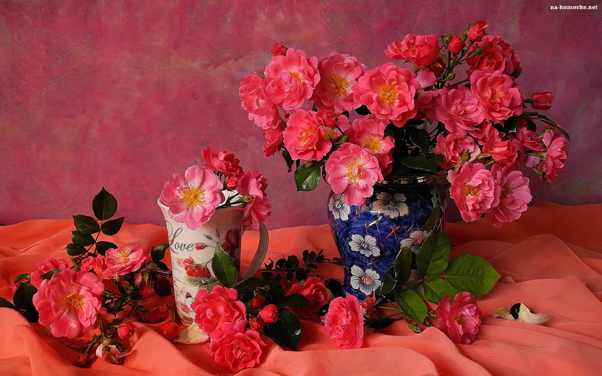 Kubek, Bukiet, Kwiaty, Róże, Wazon na Komórkę