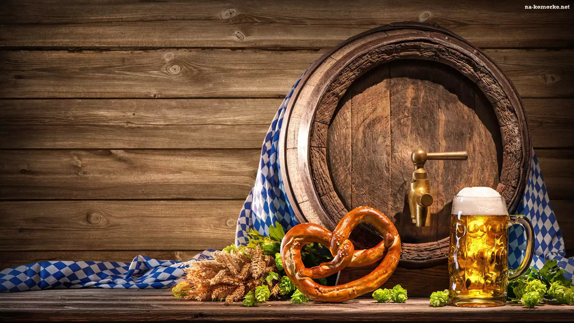 Piwo, Deski, Precel, Beczka, Pszenica, Kompozycja, Chmiel, Kufel na Komórkę