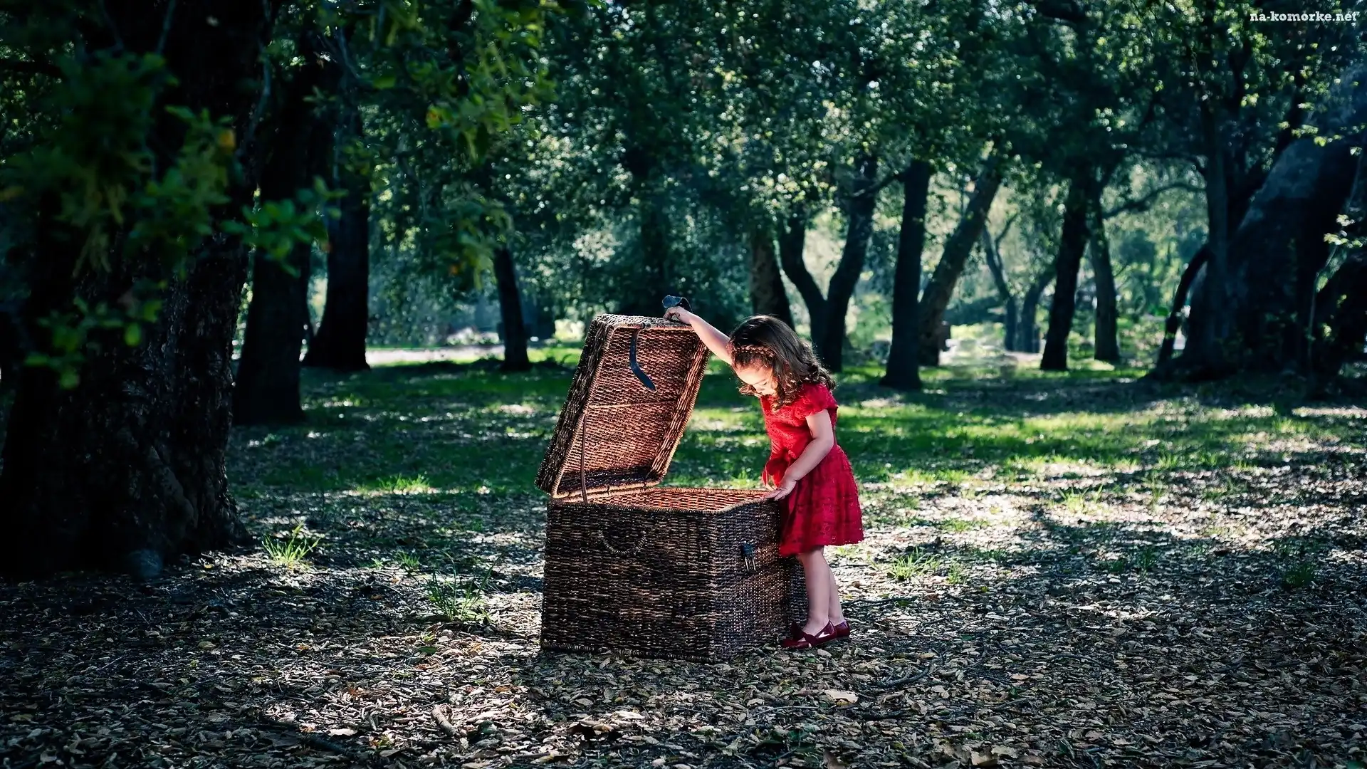 Kufer, Las, Dziewczynka, Kosz, Park, Skrzynia na Komórkę