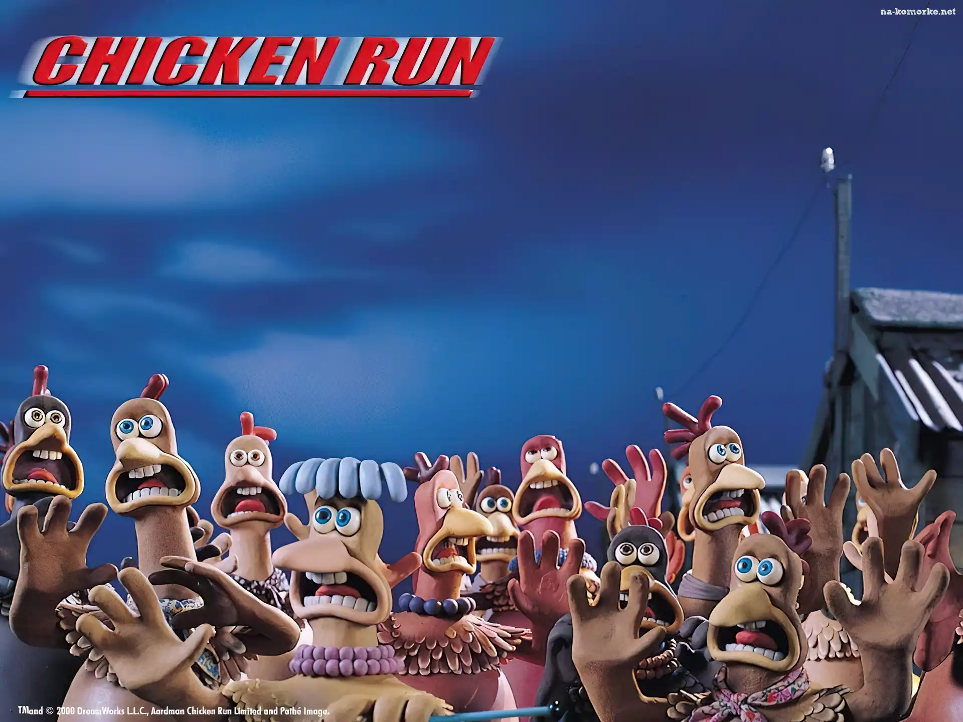 dach, noc, Uciekajace kurczaki, Chicken Run przestraszone, kurczaki, dzioby