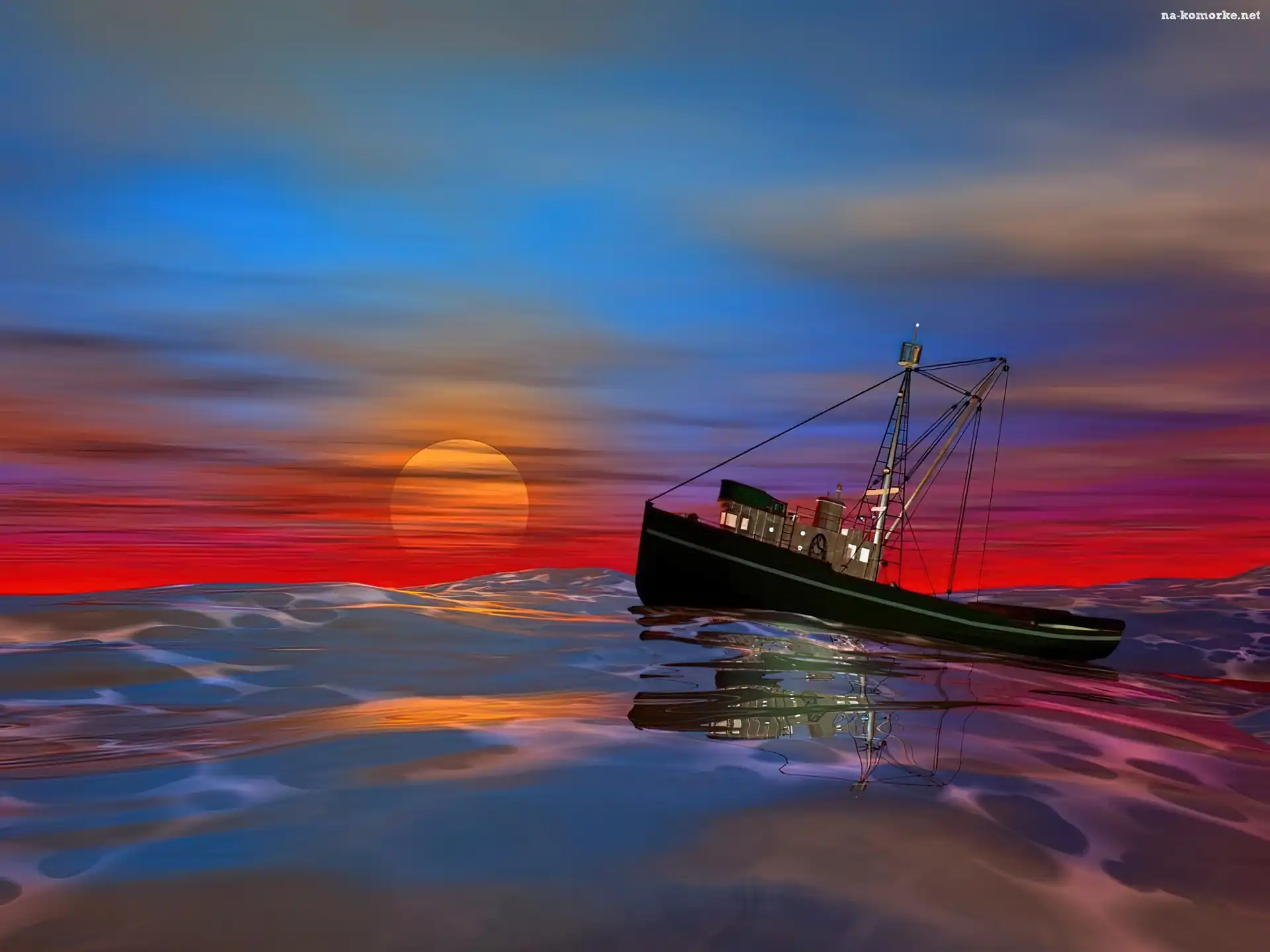 Kuter, Zachód Słońca, Morze na Komórkę