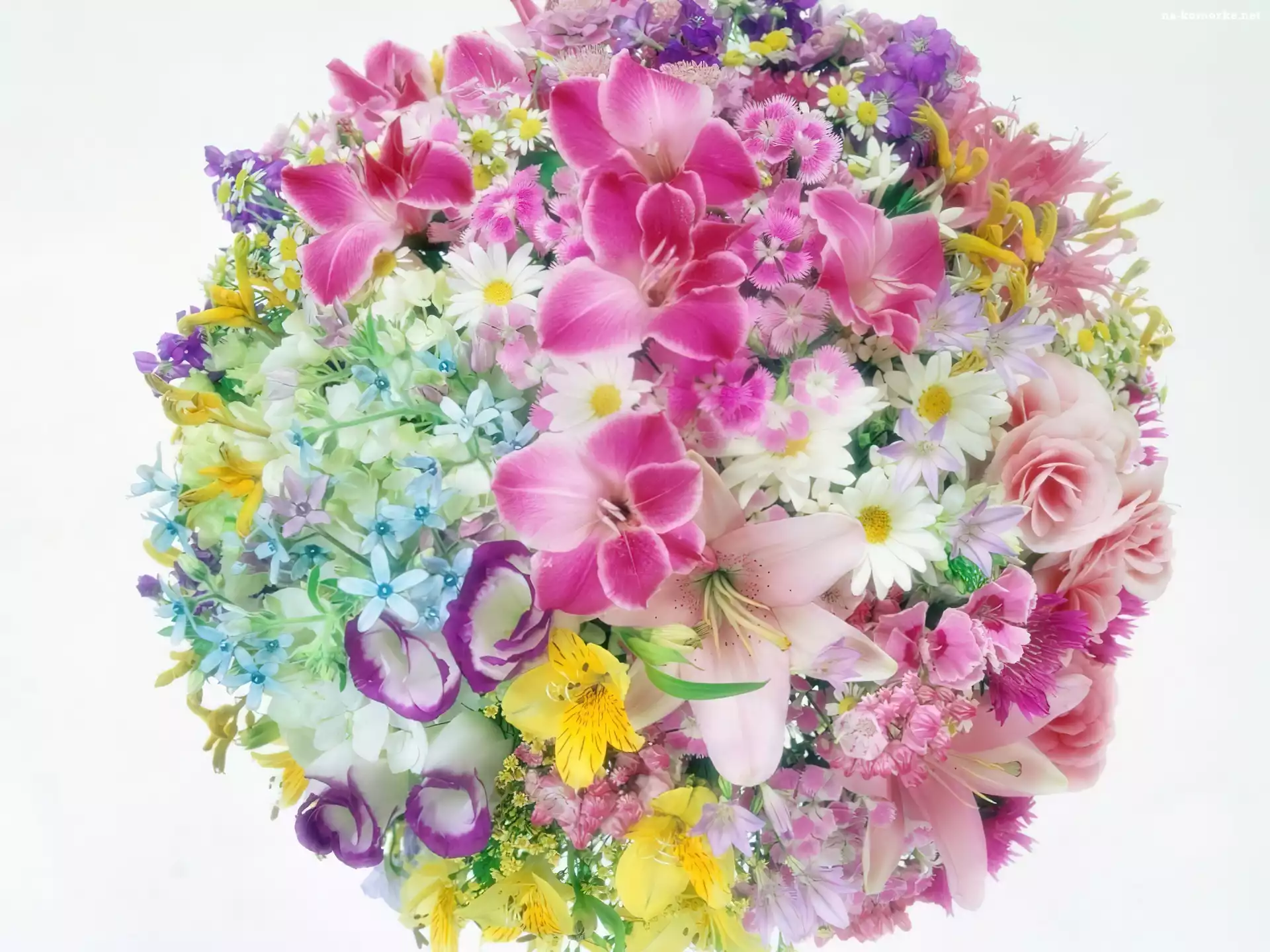 Lilia Kalia Żółte, Kwiatki Fioletowe, Kwiatki Żółty, Gerber, Wiosenny, Kwiat Cebulica, Hiszpańska Szafirek drobnokwiatowy Różowe, Orchidee Dmuchawiec, Niebo Różowy, Storczyk Różowe, Niebo, Kwiaty, Chmury Zantedeschia Pomarańczowy, Żółty, Koszyczek Szafirki