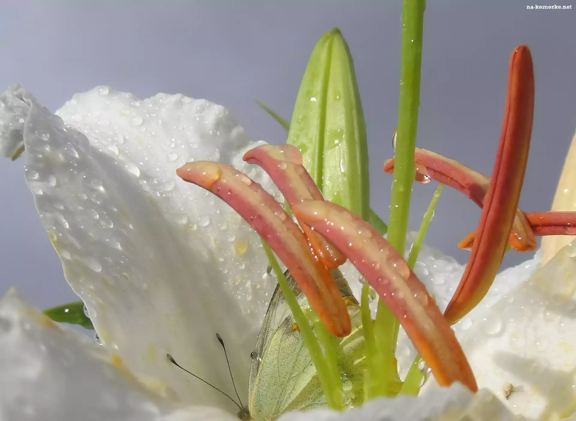 Kwiat, Motyl, Białej, Lilii na Komórkę