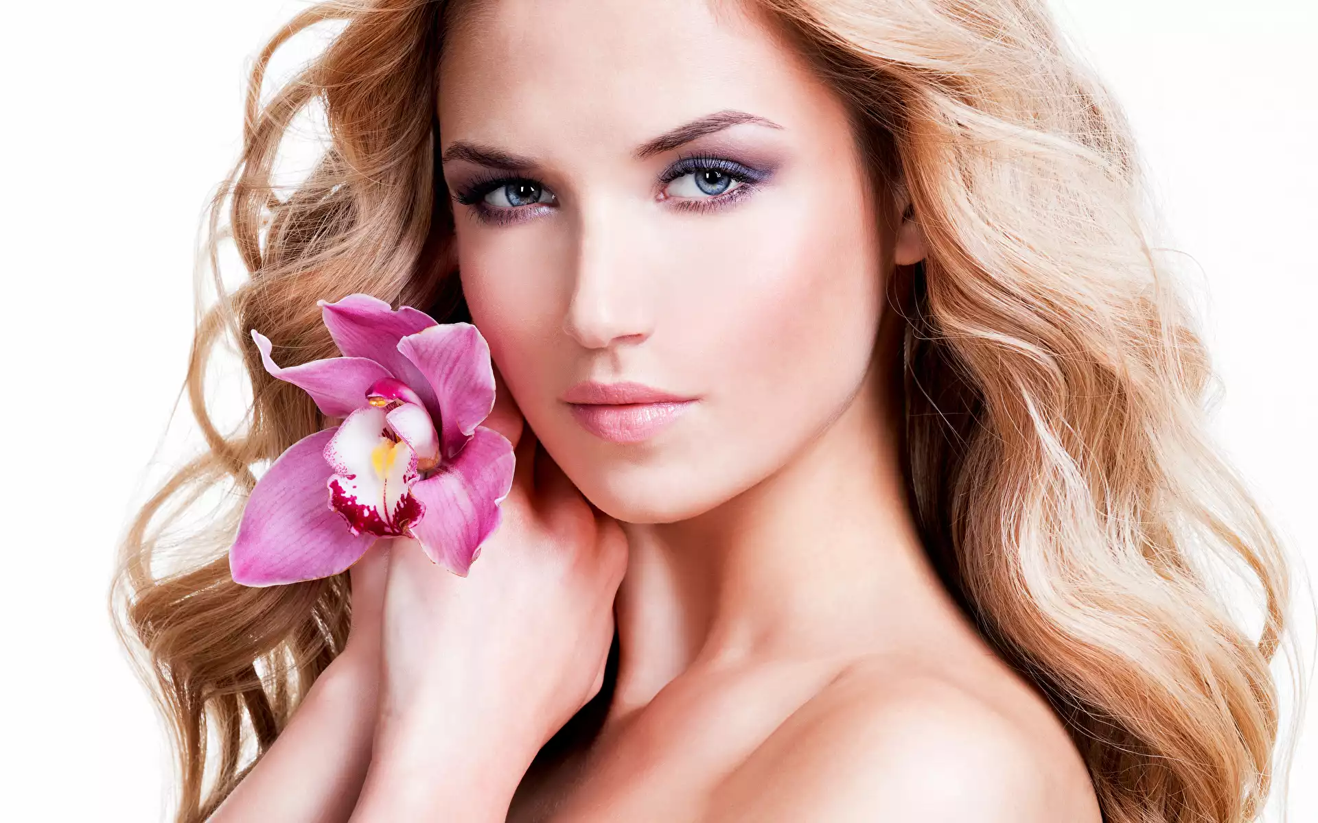 Kobieta, Kwiat, Niebieskie, Storczyk, Twarz, Oczy, Makijaż, Blondynka na Komórkę