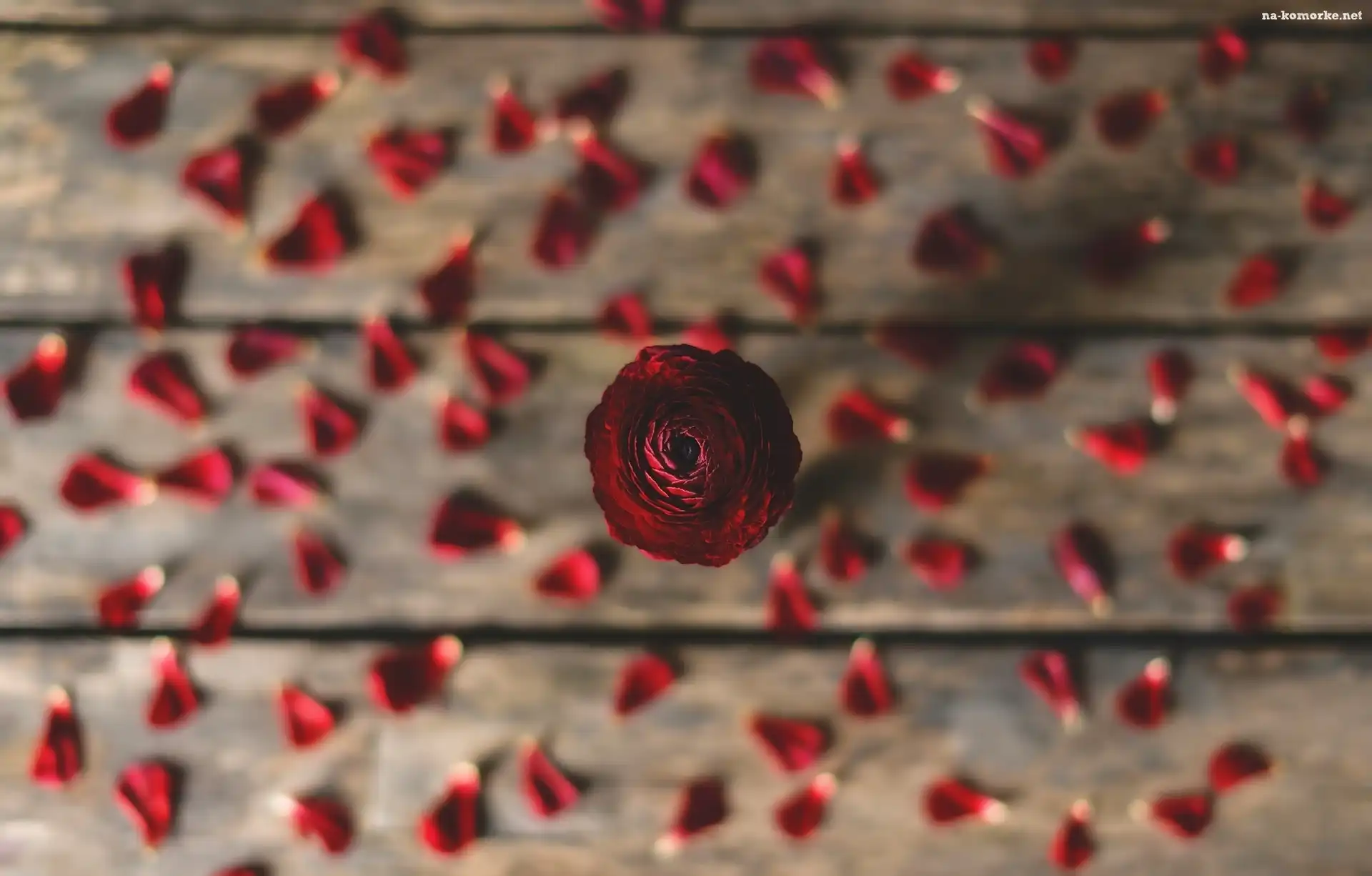 Deski, Kwiat, Czerwony, Rozmycie, Jaskier azjatycki, Płatki na Komórkę