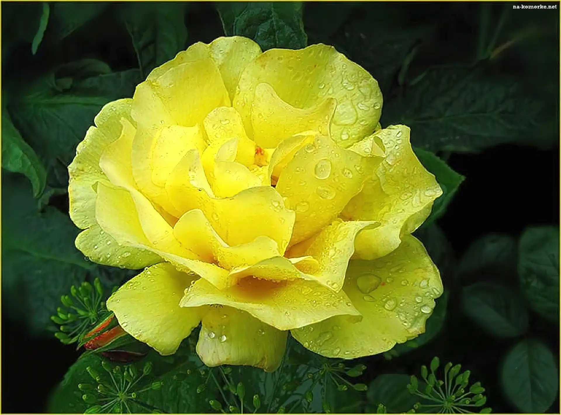 Żółty, Krople, Kwiat, Liście na Komórkę