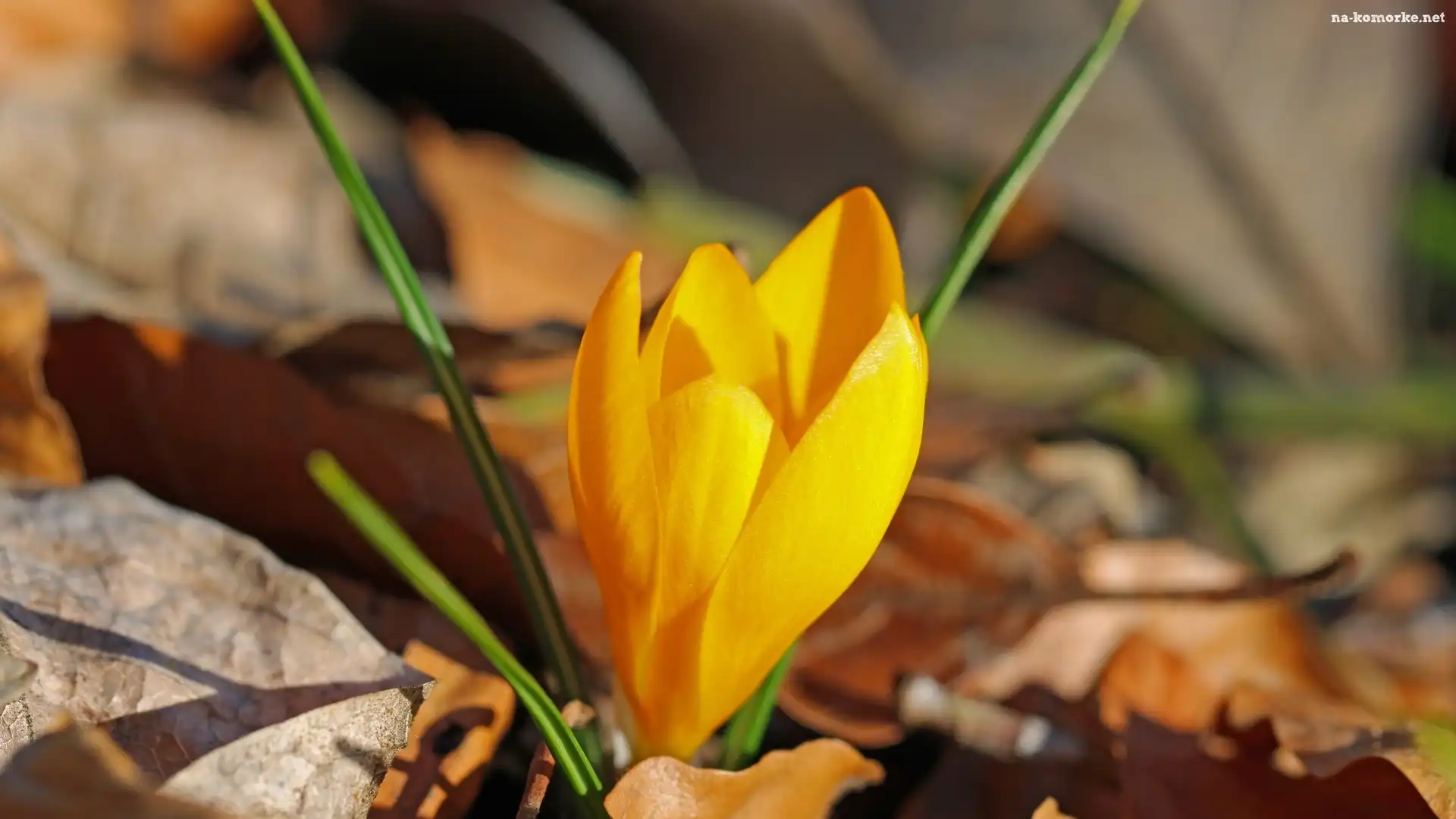 Kwiat, Liście, Żółty, Krokus na Komórkę