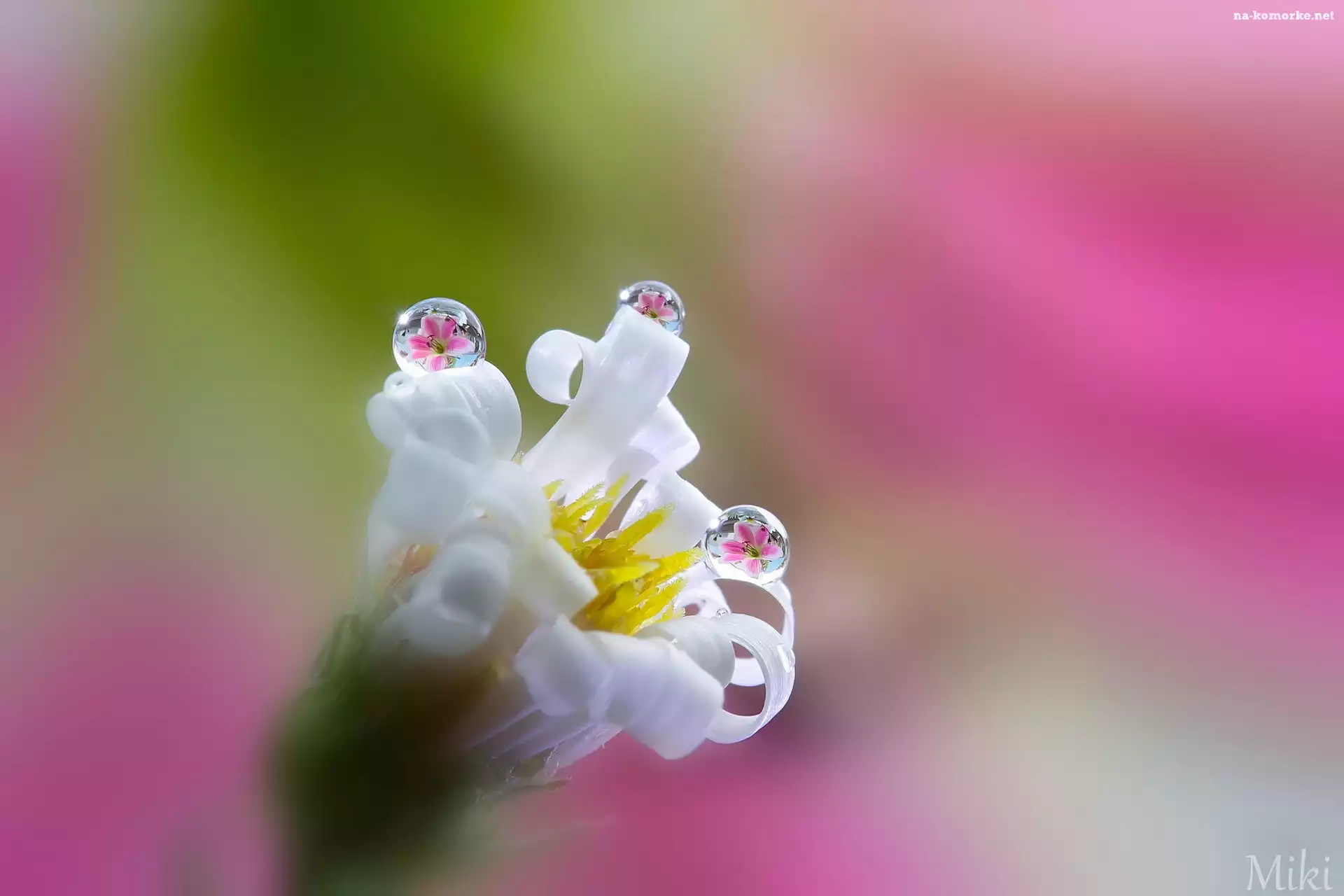 Kwiatek, Makro, Płatki, Krople na Komórkę