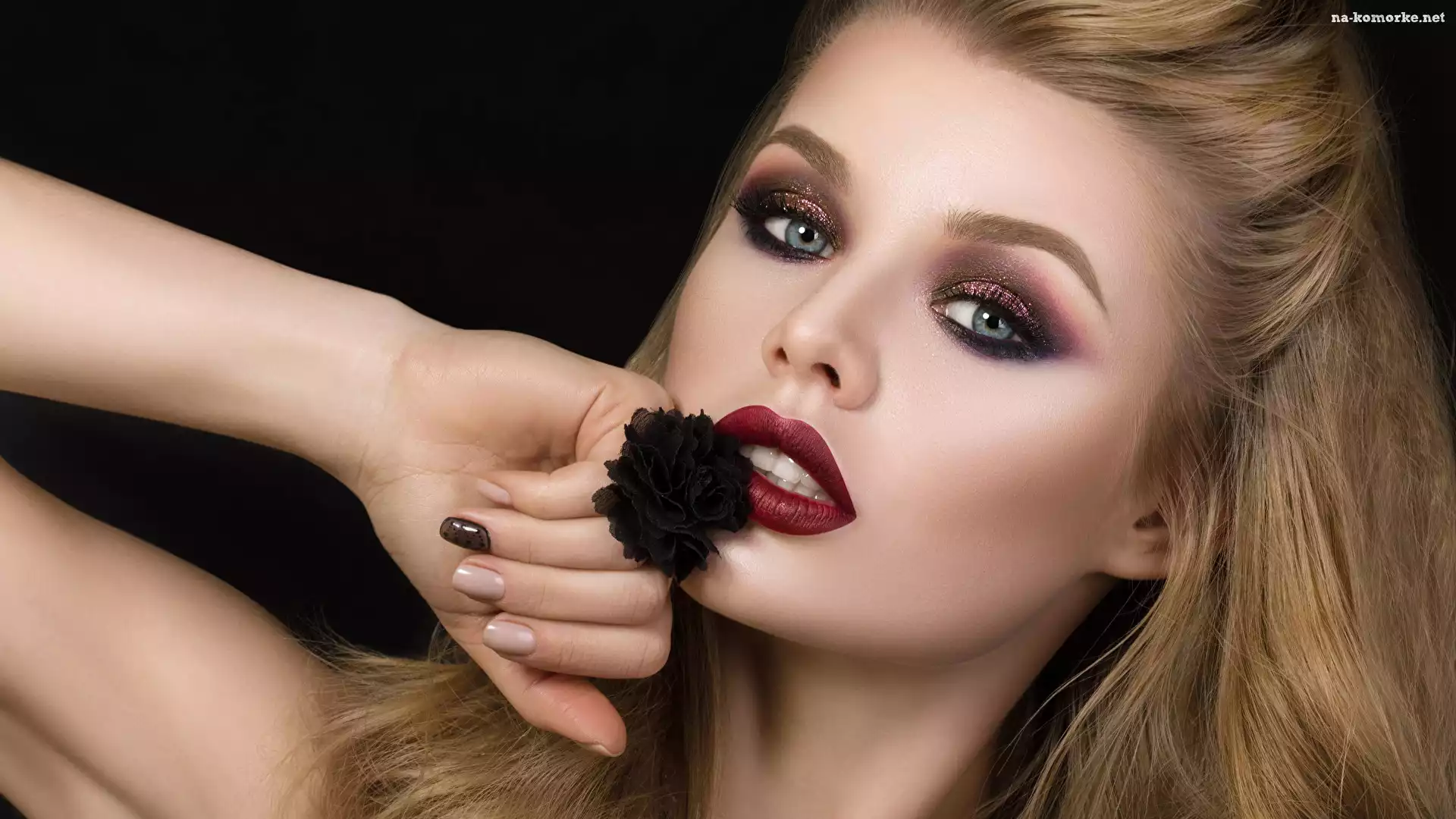 Kwiatek, Kobieta, Blondynka, Twarz, Makijaż na Komórkę