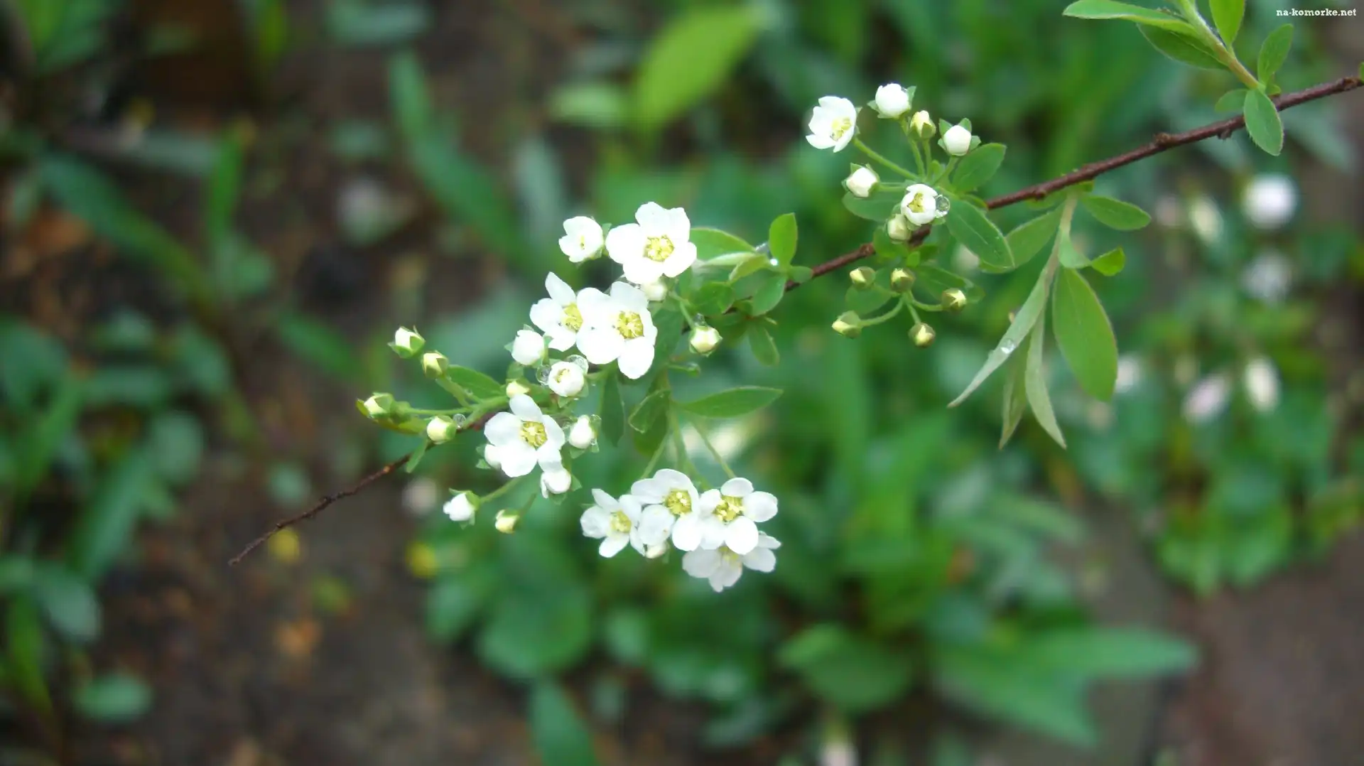 Kwiatki, Krzew, Tawuła, Gałązka, Białe, Listki na Komórkę