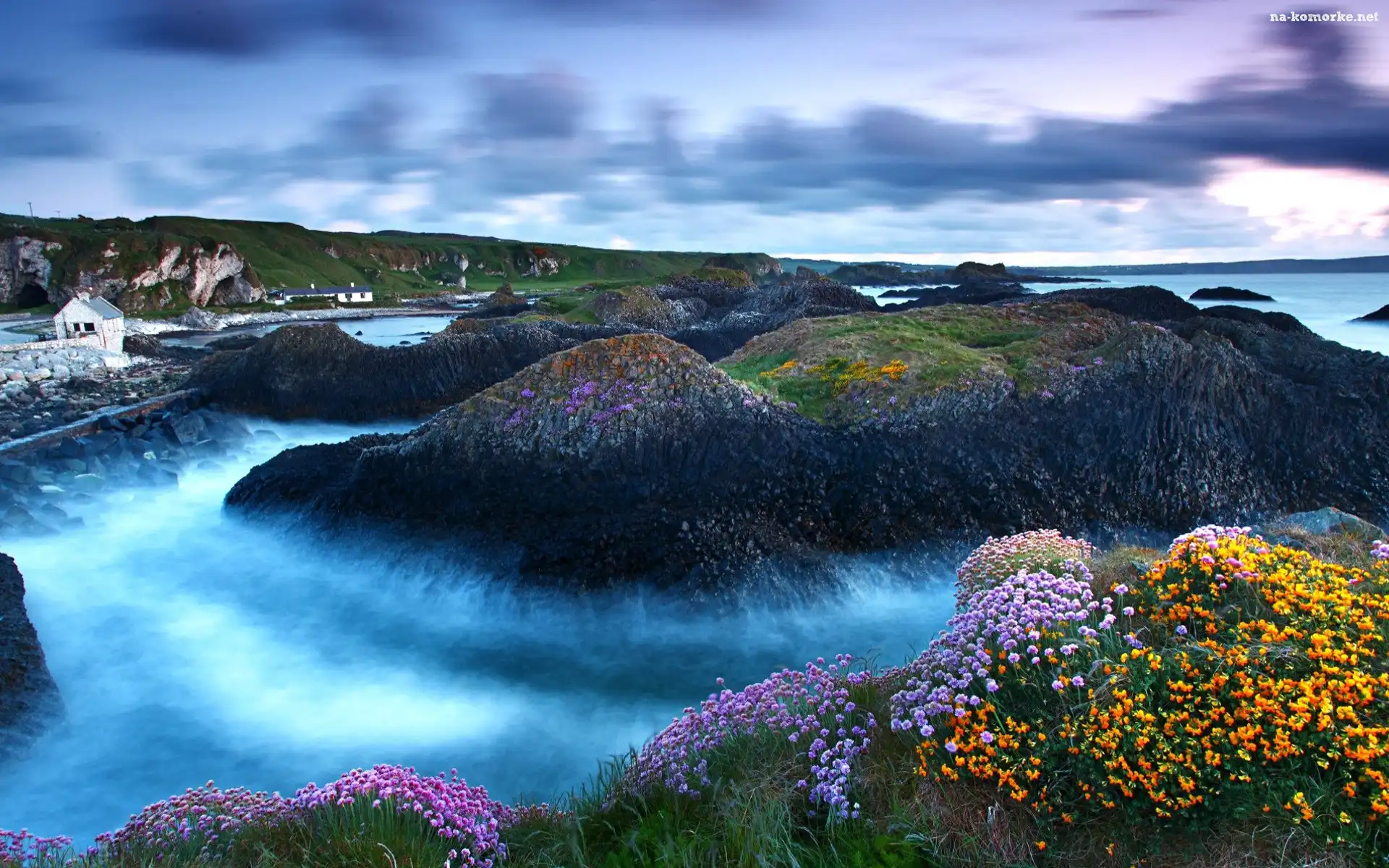 Kwiatki, Wybrzeże, Chmury, Skały na Komórkę