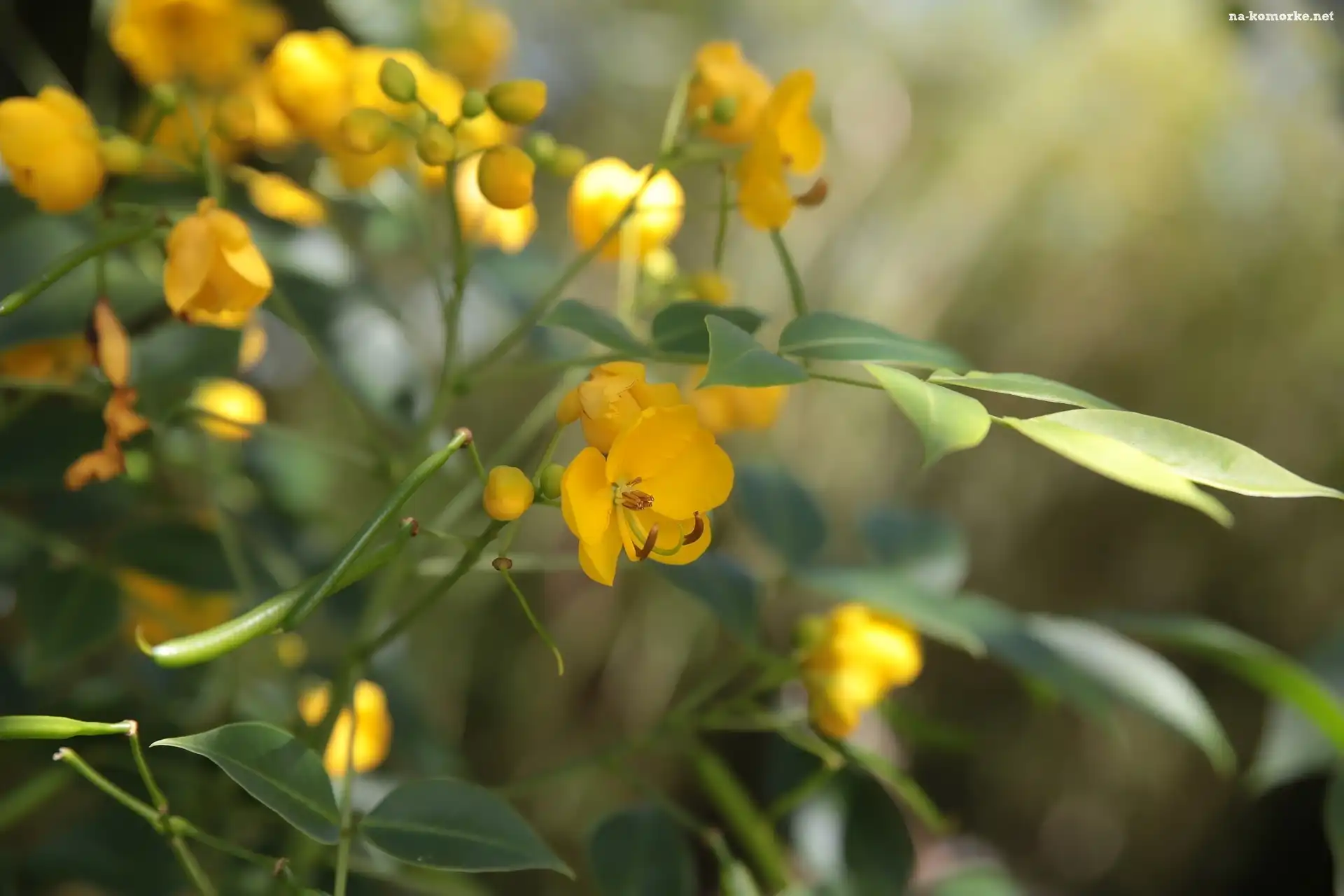 Żółte, Gałązki, Kwiatki, Strączyniec na Komórkę