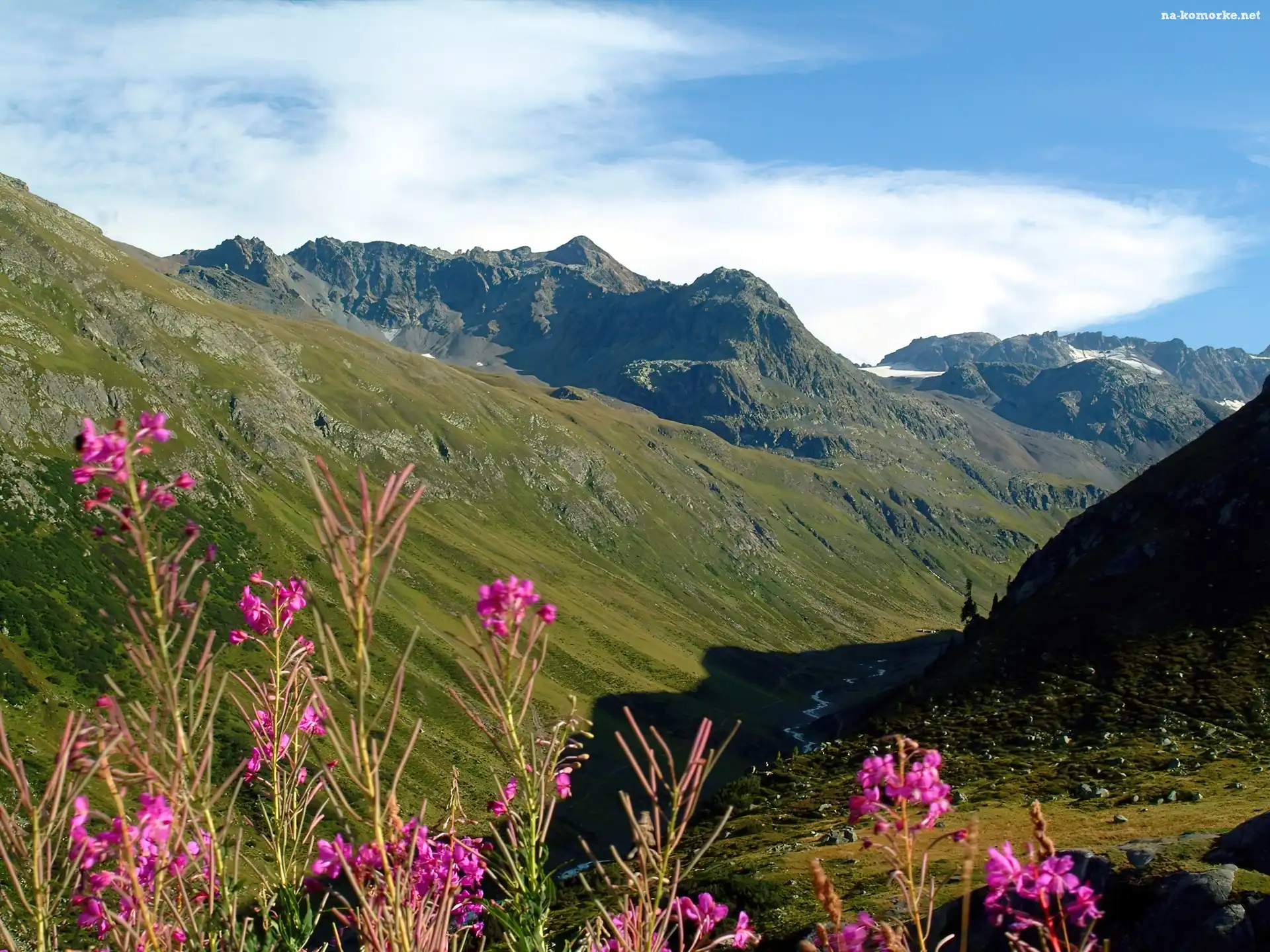 Jezioro, Odbicie, Lustrzane Jezioro, Aumar, Pireneje Szklana, Róża Białe, Tło, Kwiaty, Rozmazane Kręta, Skały, Górska, Droga Żółty, Kwiatuszek Góra Czerwone, Kwiatki Kwiat Góra, Skały Wrzos zwyczajny Rozchodnik Chmury, Góry, Śnieg Kwiat, Pospolitego, Mniszka
