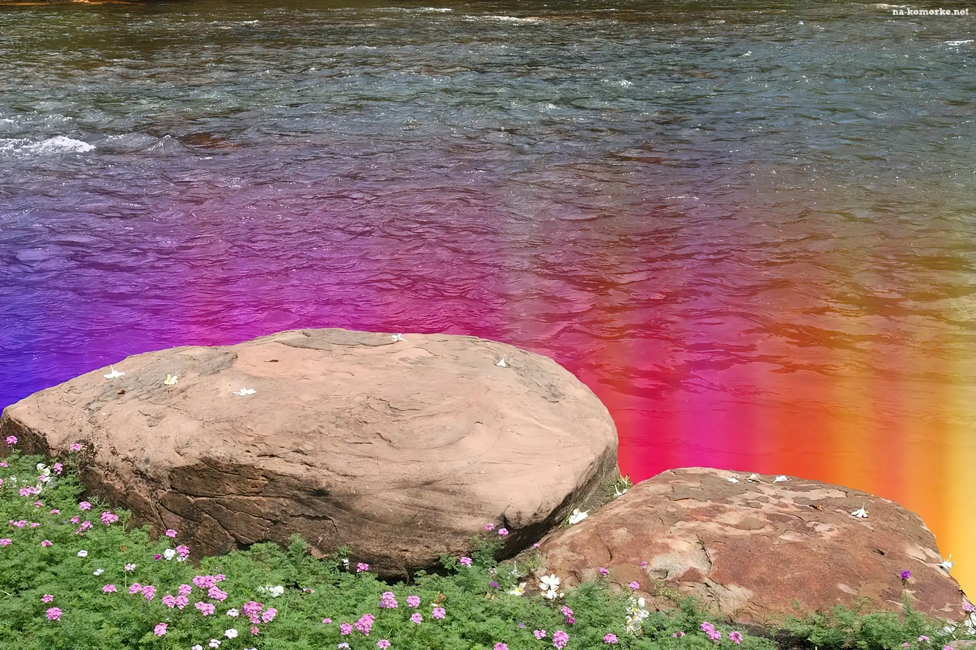 Kwiatki, Woda, Kamienie, Kolorowa na Komórkę