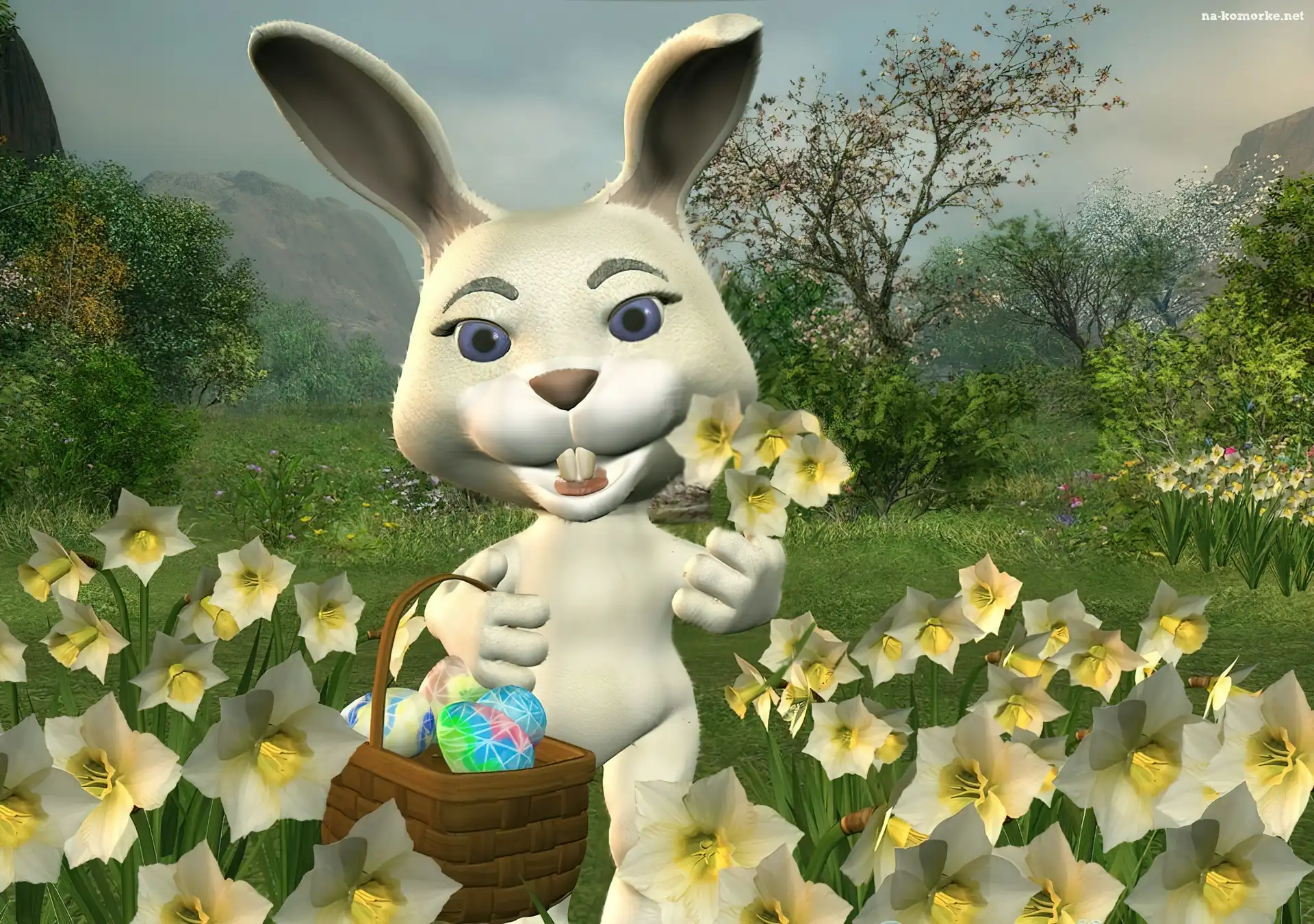 Kwiatki, Wielkanoc, Zajączek, Koszyczek, Pisanki na Komórkę