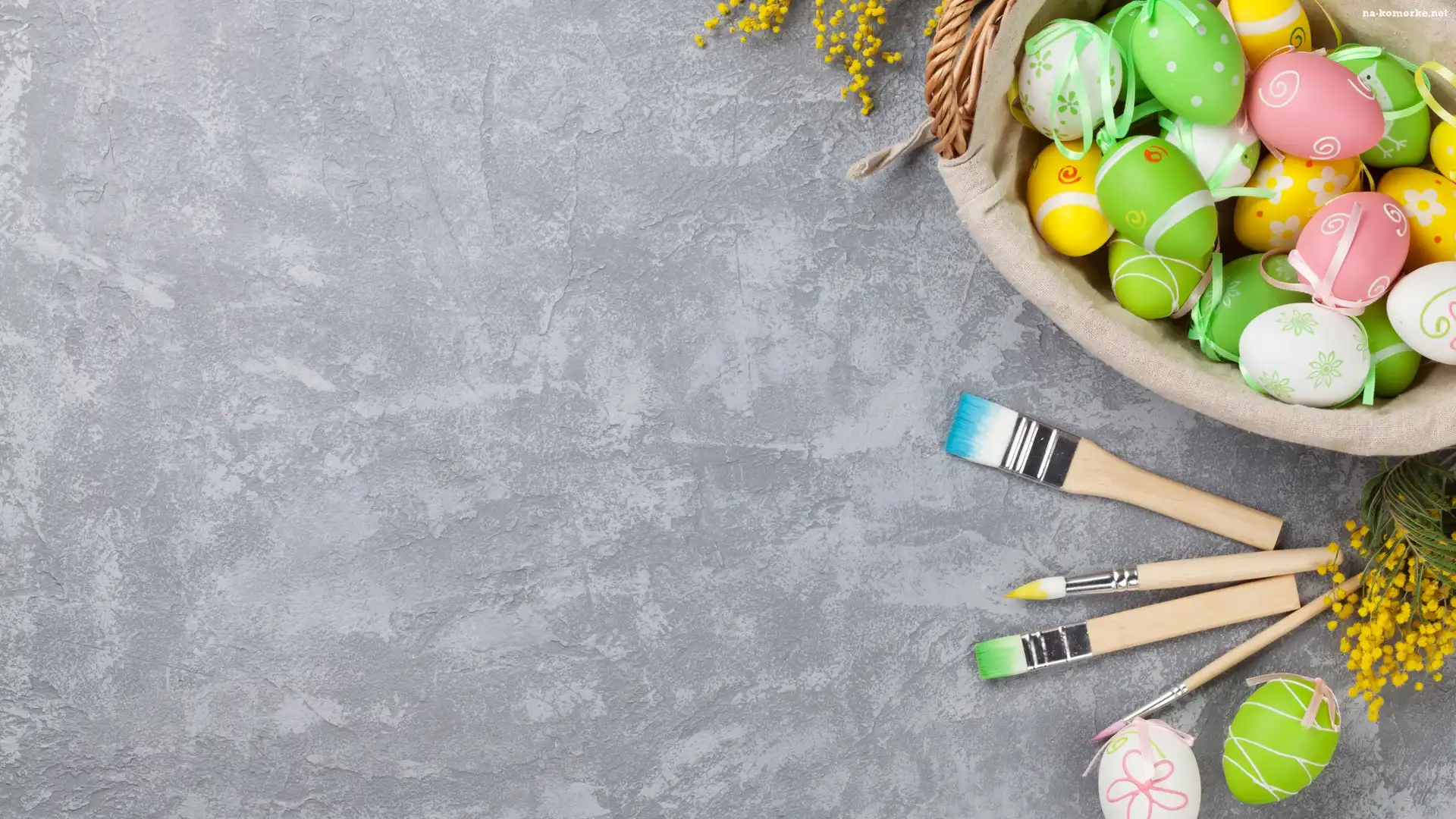 Kolorowe, Wielkanoc, Żółte, Pisanki, Tło, Koszyk, Szare, Pędzle, Kwiatki na Komórkę