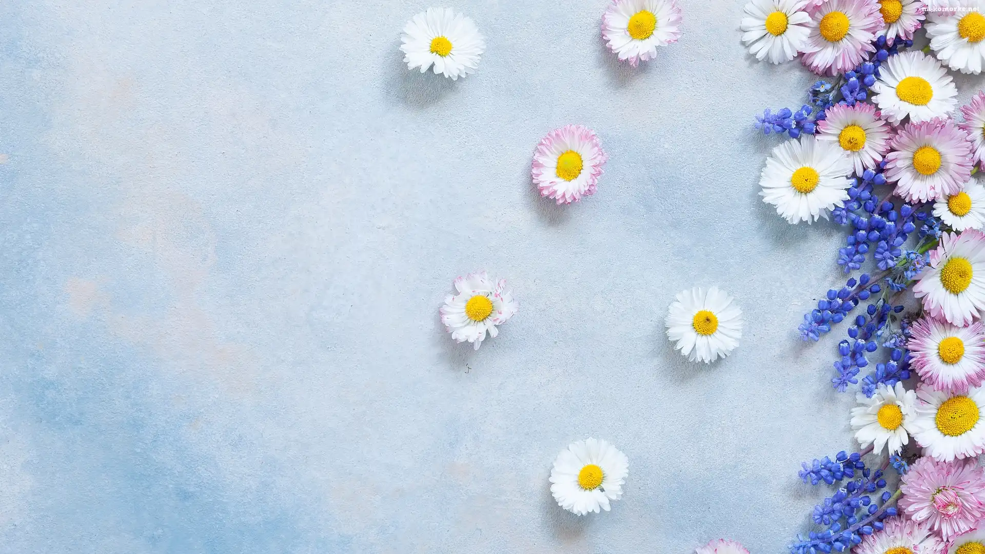 Kwiatki, Rumianek, Jasne, Tło, Niebieskie na Komórkę