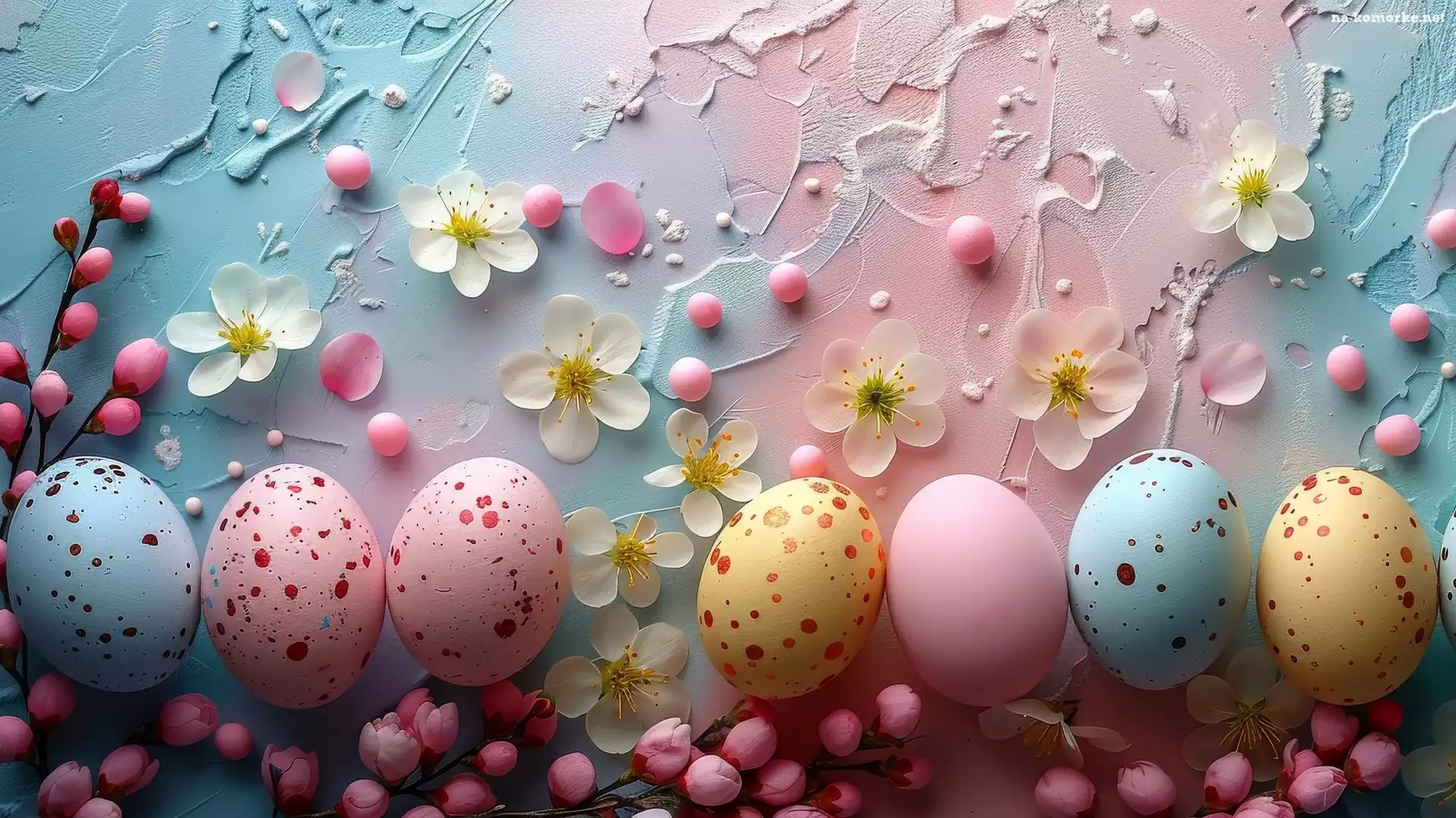 Pąki, Białe, Wielkanoc, Kwiatki, Pisanki, Różowe, Kropkowane na Komórkę