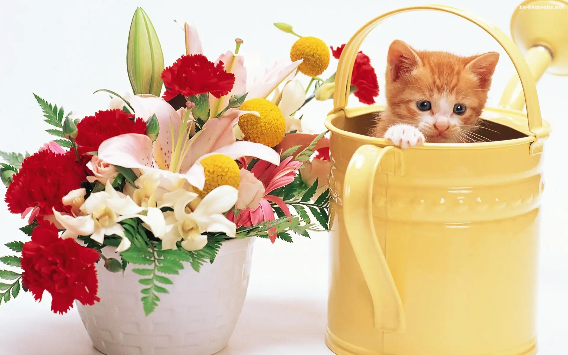 Kwiatów, Mały, Kociak, Konewka, Bukiet na Komórkę