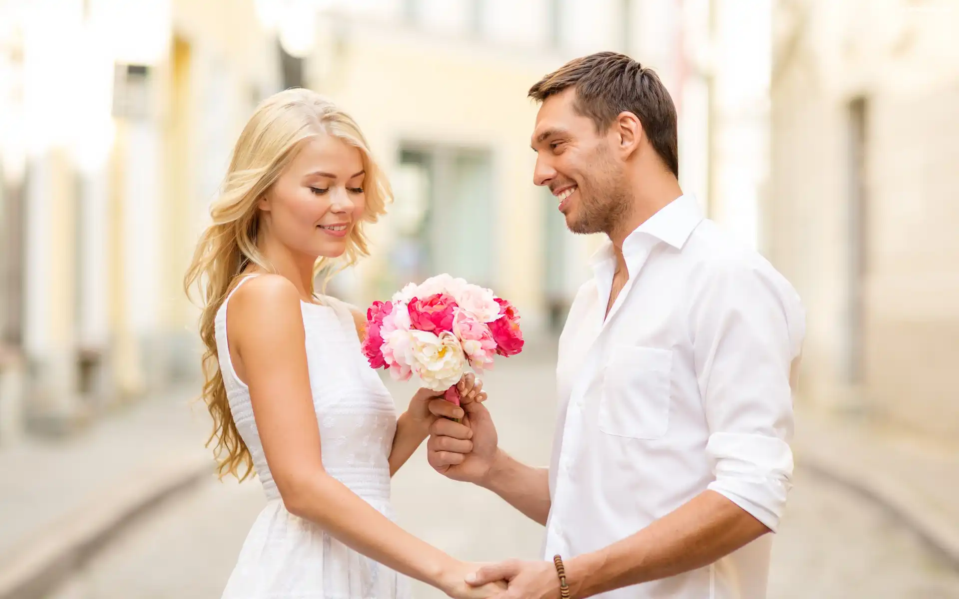 Kwiatów, Zakochana, Para, Ślub, Bukiet na Komórkę