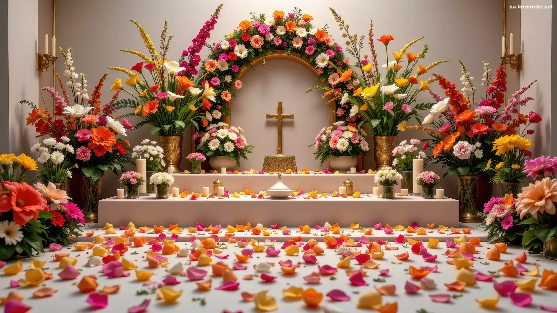 Kwiaty, Płatki, Ołtarzyk, Kwiatów, Świece, Bukiety, Krzyż na Komórkę