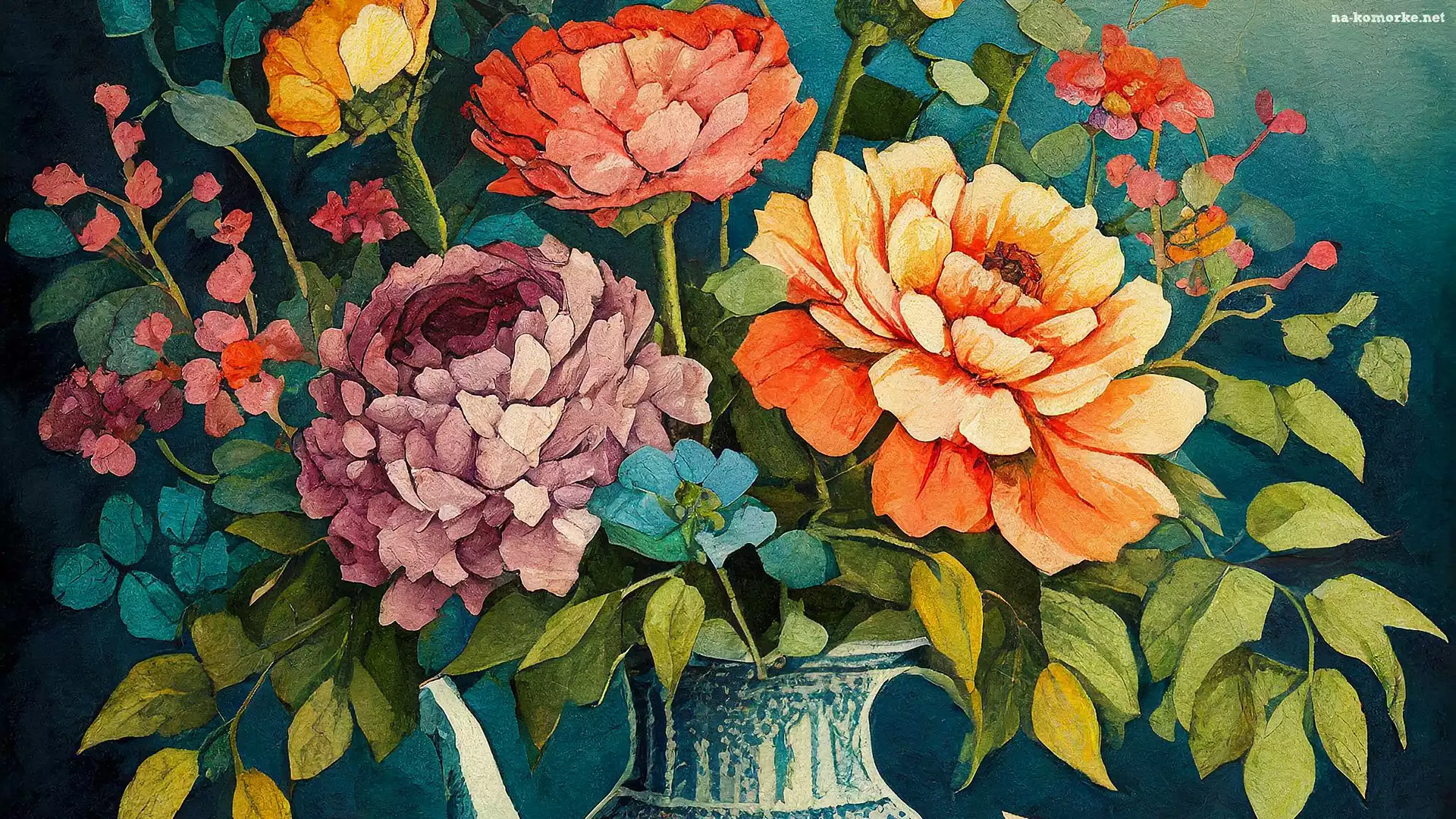 Bukiet kwiatów, Wazon, Obraz, Malarstwo na Komórkę