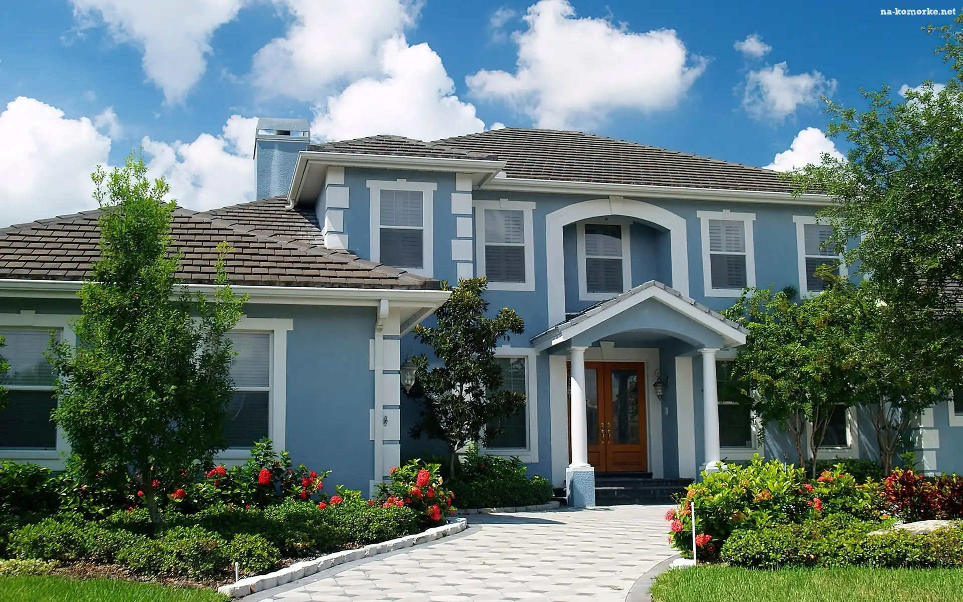 Kwiatowy, Luksusowy, Dom, Chodnik, Ogród na Komórkę
