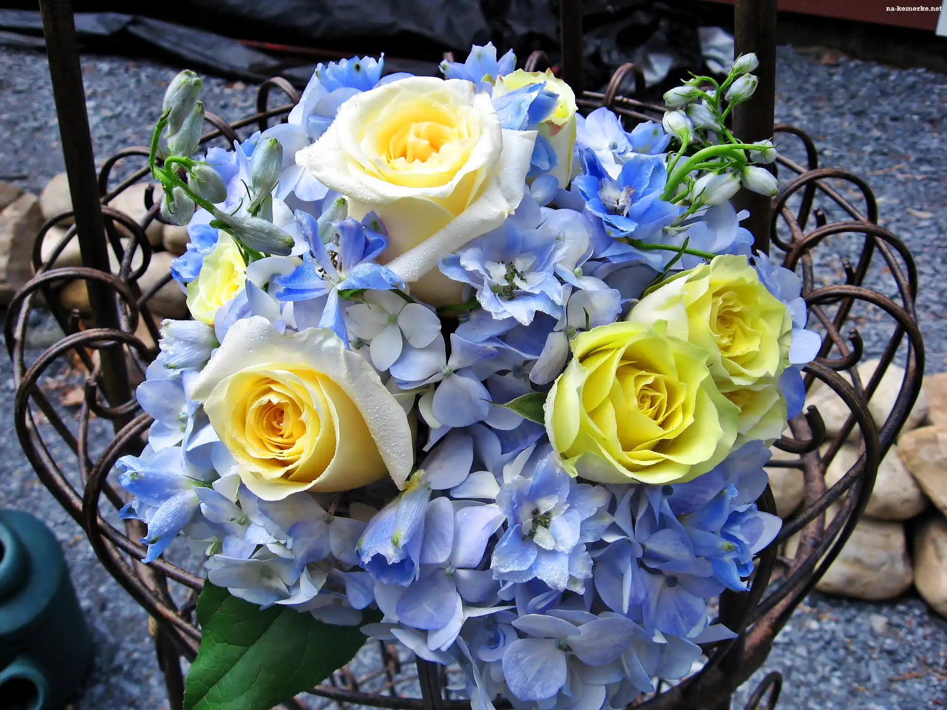 Kwiatuszki, Bukiet, Żółtych, Róż, Niebieskie na Komórkę