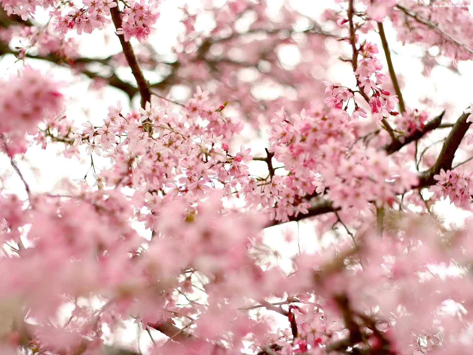 Różowe, Kwiatuszki, Wiśnia na Komórkę