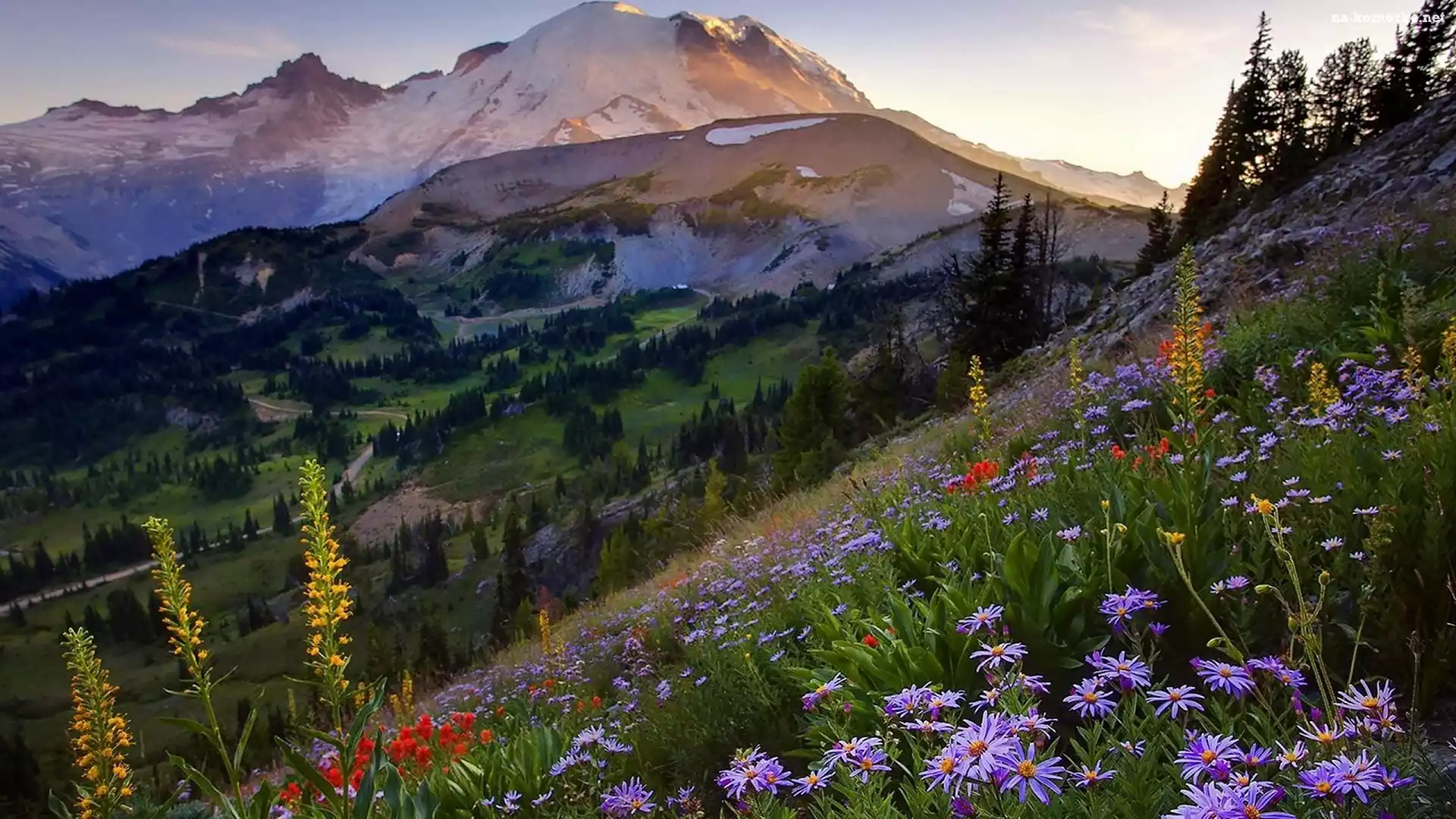 Kwiaty, Lasy, Góry, Cień, Łąka, Światło na Komórkę