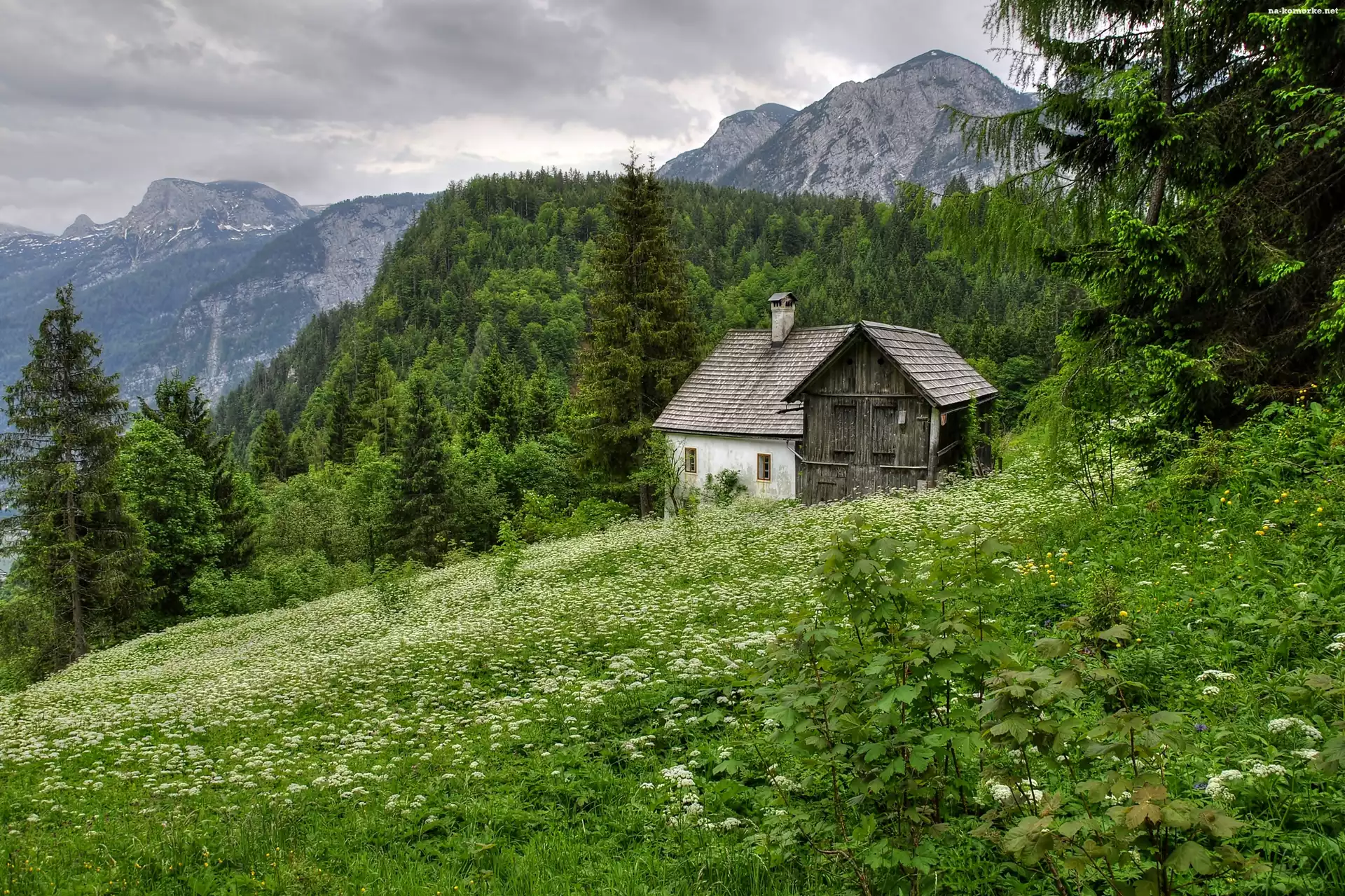 Kwiaty, Góry, Lasy, Łąka, Domek na Komórkę