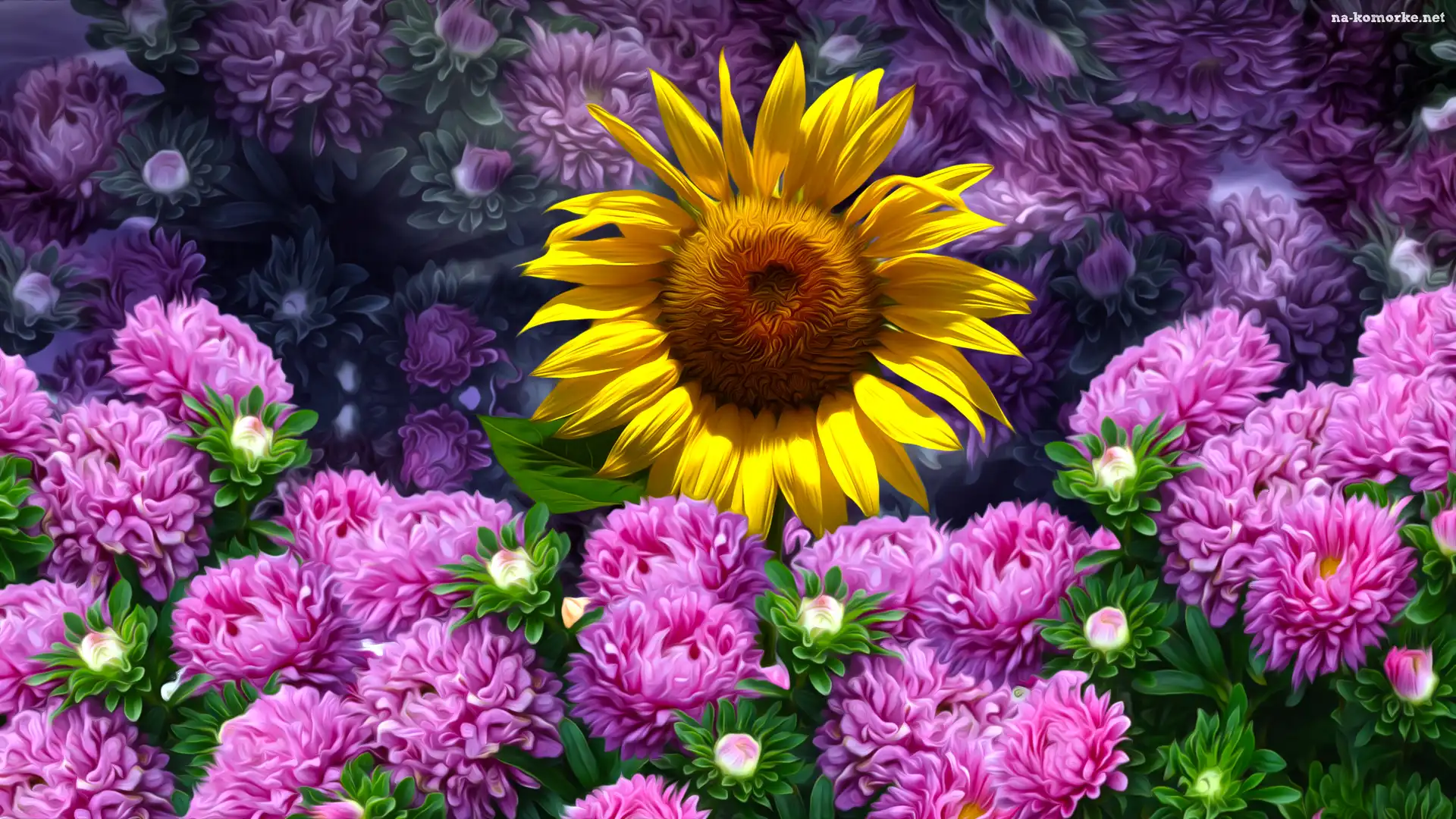 Kwiaty, Grafika, Astry, Słonecznik na Komórkę