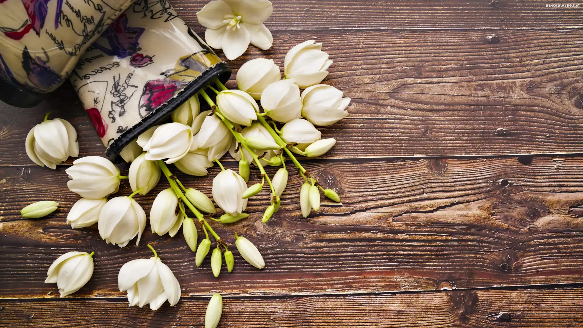 Kwiaty, Deski, Białe, Brązowe na Komórkę