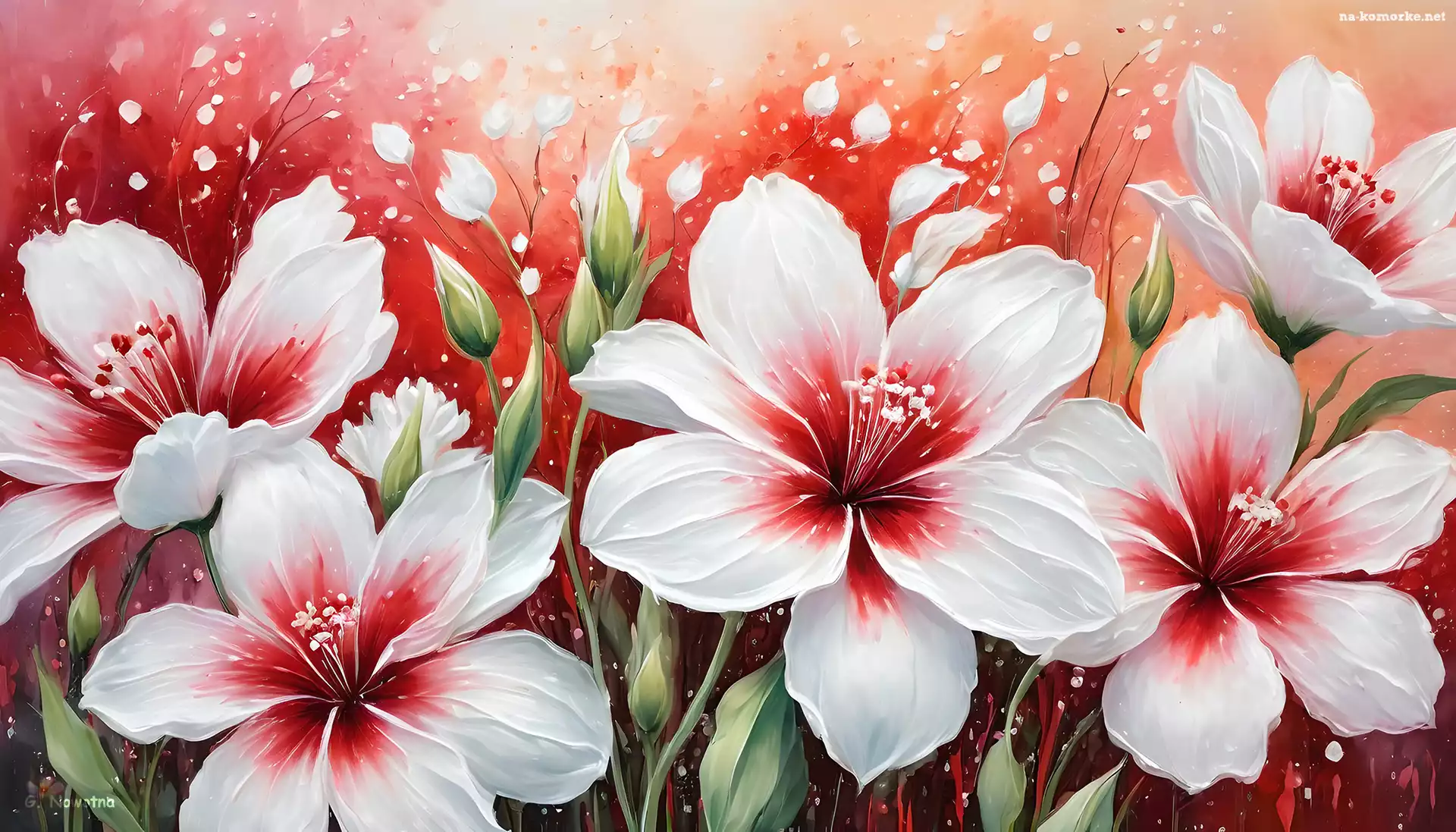 Biało-czerwone, Grafika, Kwiaty na Komórkę
