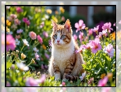 Siedzący, Kwiaty, Biało-rudy, Kot na Komórkę