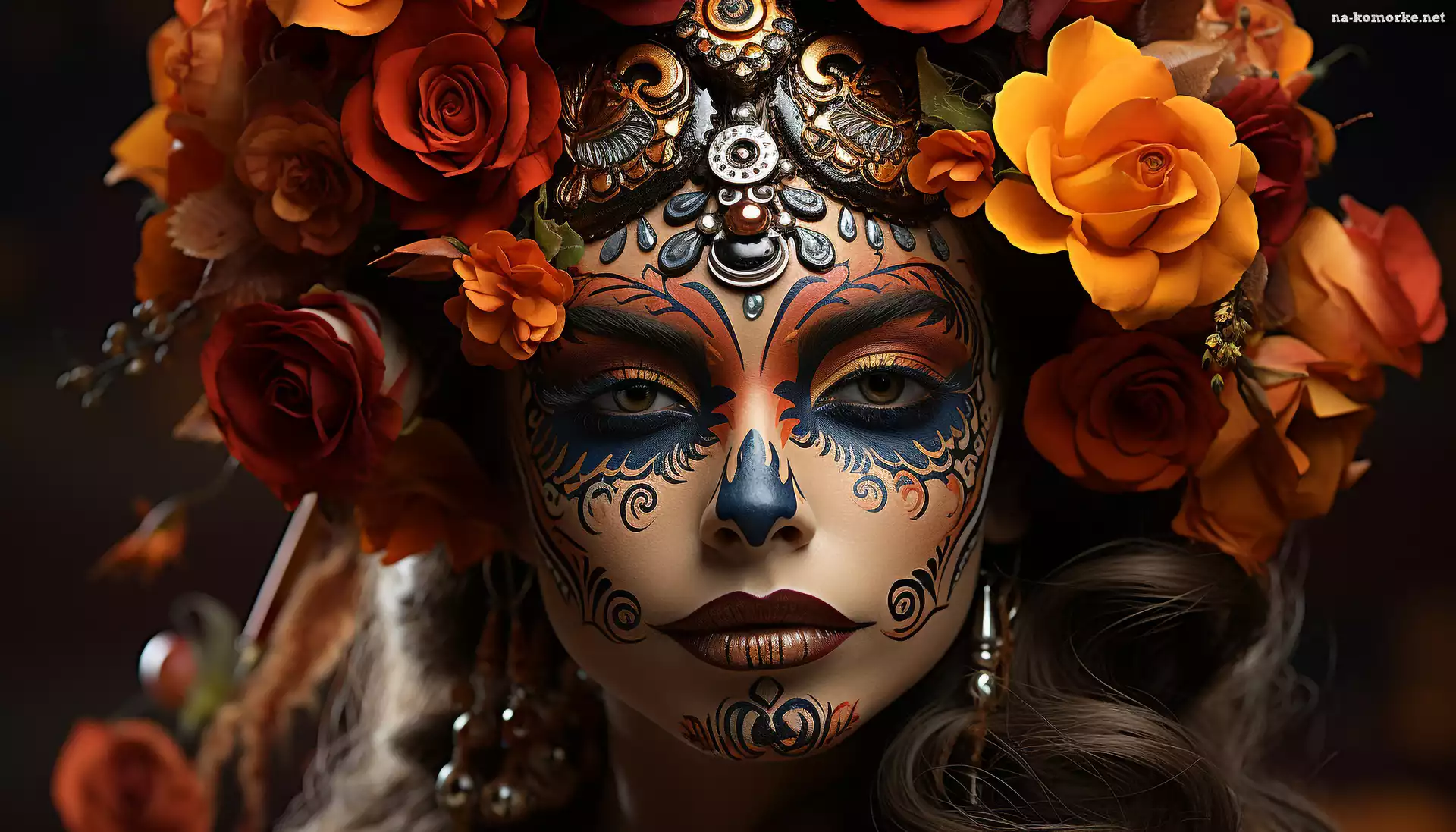 Kobieta, Kwiaty, Bodypainting, Twarz, AI na Komórkę