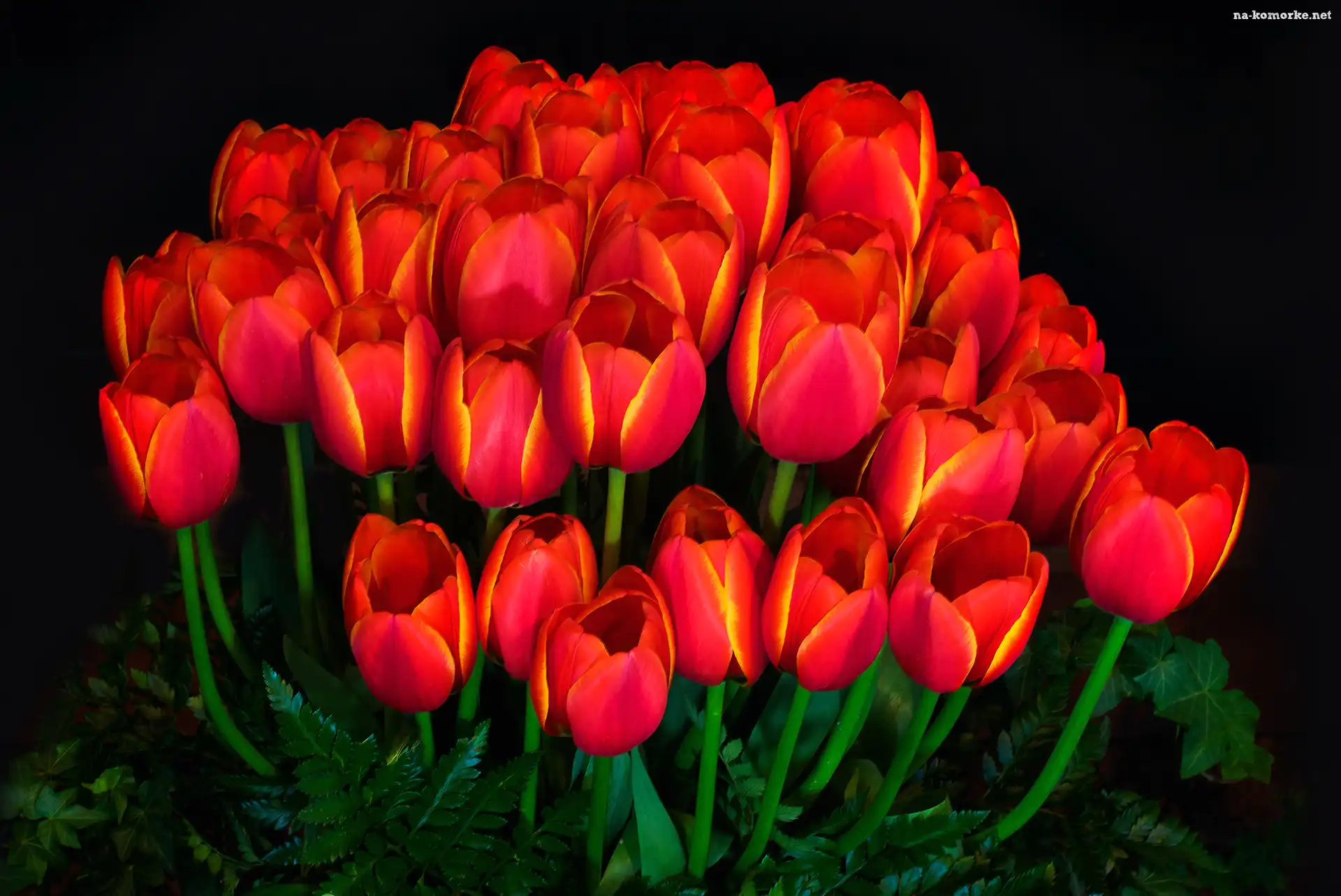 Kwiaty, Tło ciemne, Bukiet, Tulipany na Komórkę