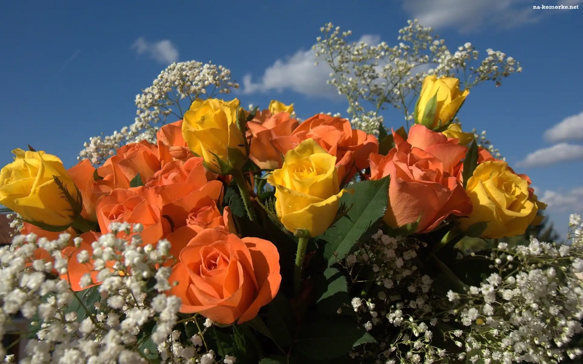 Kwiaty, Gipsówka, Bukiet, Róże na Komórkę