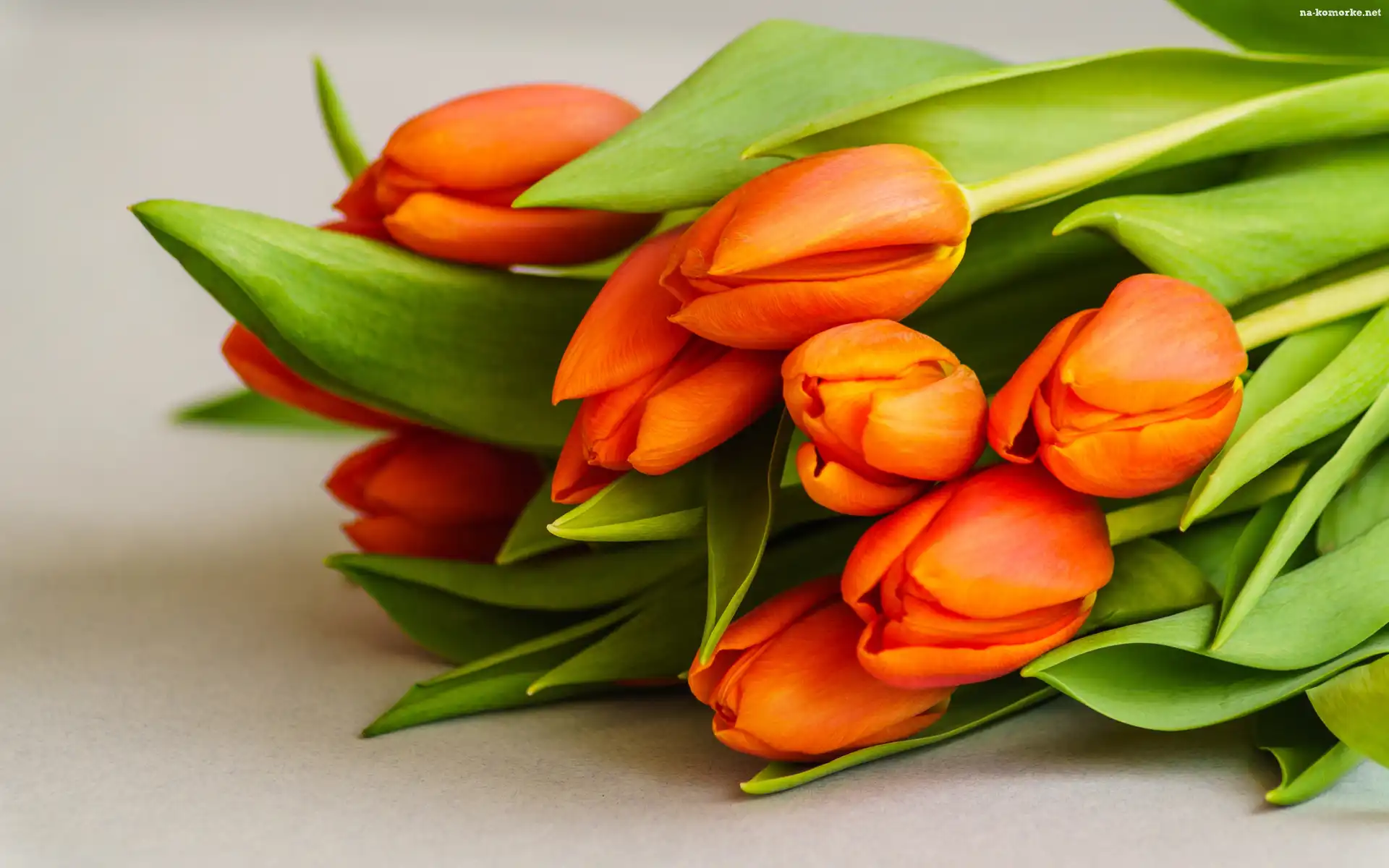 Kwiaty, Tulipany, Bukiet, Pomarańczowe na Komórkę